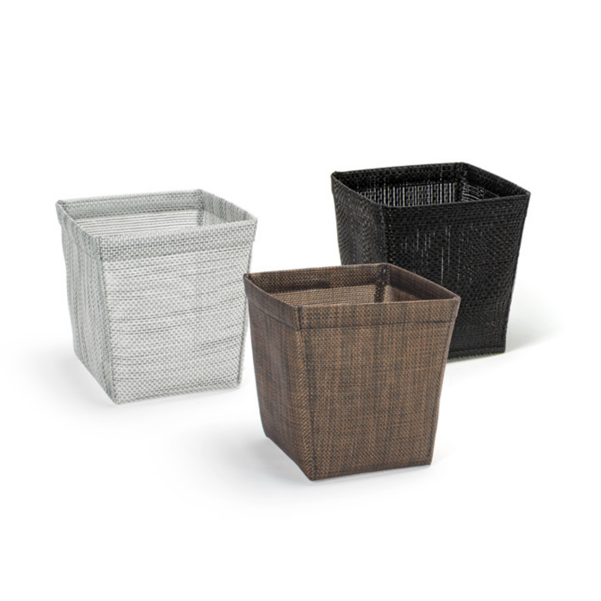 Create dynamic presentations with this woven vinyl basket. Perfectly portioned for a variety of uses, this artfully crafted item is bound to make an excellent first impression! While its size works well as a decorative solution for a small ensemble of items, like candies or miniature giveaways, on tabletops or counters, its beautiful woven construction adds an intriguing look and feel to your displays. Plus, its reusable design helps reduce waste caused by disposable alternatives. 6.25" x 5.5" x 5.75". 4 count.About the Collection