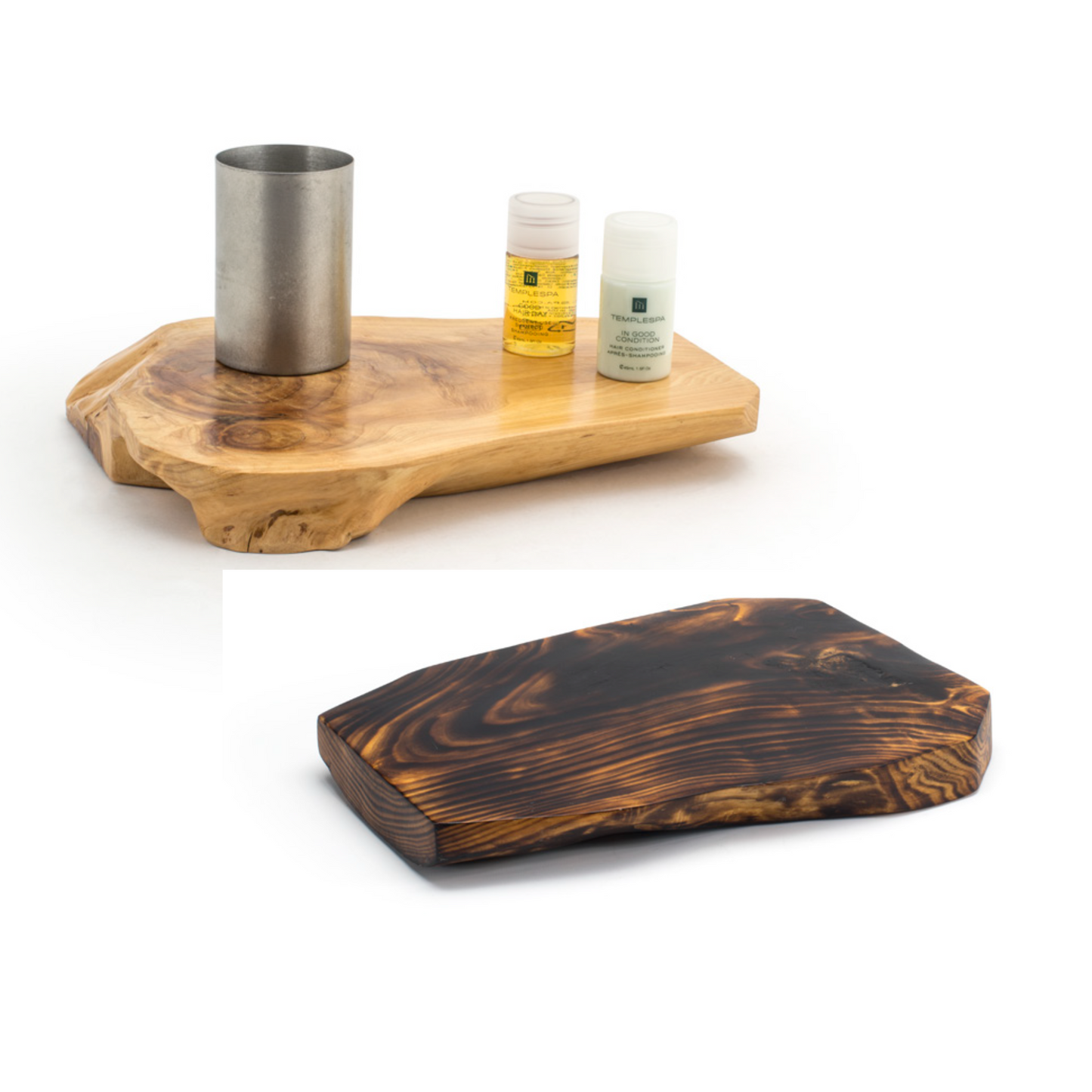 One-of-a-kind, eco-friendly amenity boards that bring a special organic touch to any room design. It's eco-chic design will enhance your visual merchandising efforts, allowing you to showcase your products in an organized and eye-catching manner. Use it to display a wide range of products, including skincare essentials, bath and body items, aromatherapy products, and much more. 12" x 9" x 1.5", 2 count.