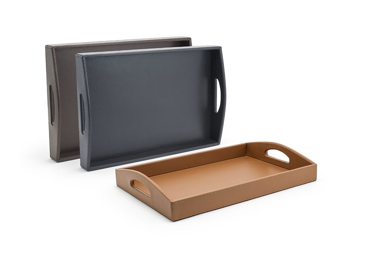This handled tray adds a touch of luxury and convenience, whether serving refreshing drinks, organizing products for treatments, delivering plush towels and robes, or creating an aromatic ambiance with essential oils. Available in brown, black, and saddle.