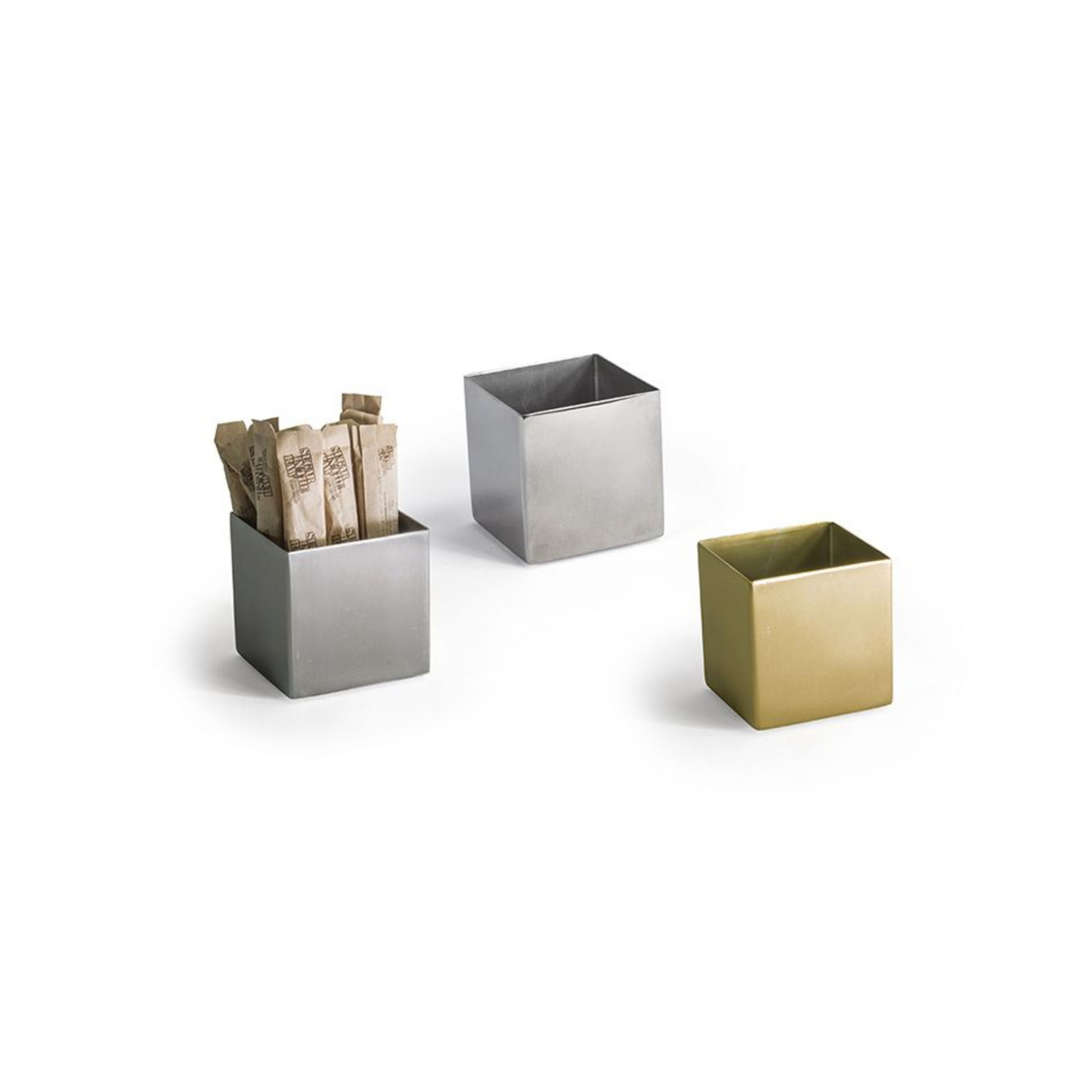 Transform your spa with the versatile and stylish square stainless steel amenity holder! Its modern design and traditional form will impress your guests and elevate the ambiance of any room. Whether you're using it to organize and store supplies or hold brushes, this amenity holder is both functional and attractive. 2.25" x 2.25" x 2.25", 7 oz, 6 count.