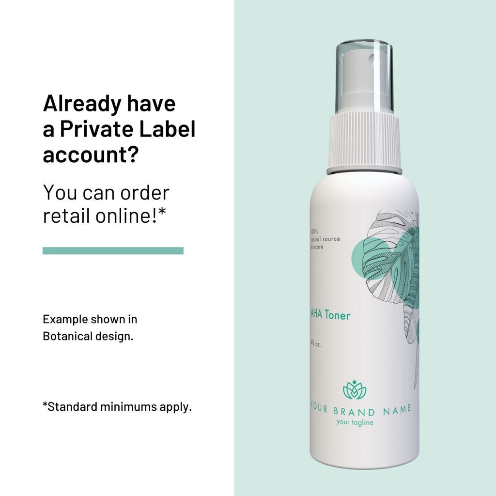 When purchasing online, you’ll need to have a net minimum of 24 Private Label retail products in your shopping cart. Per product minimums can be as few as 3 per product, excluding lip balm.