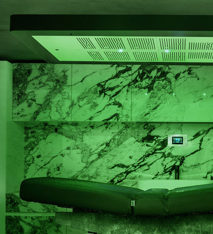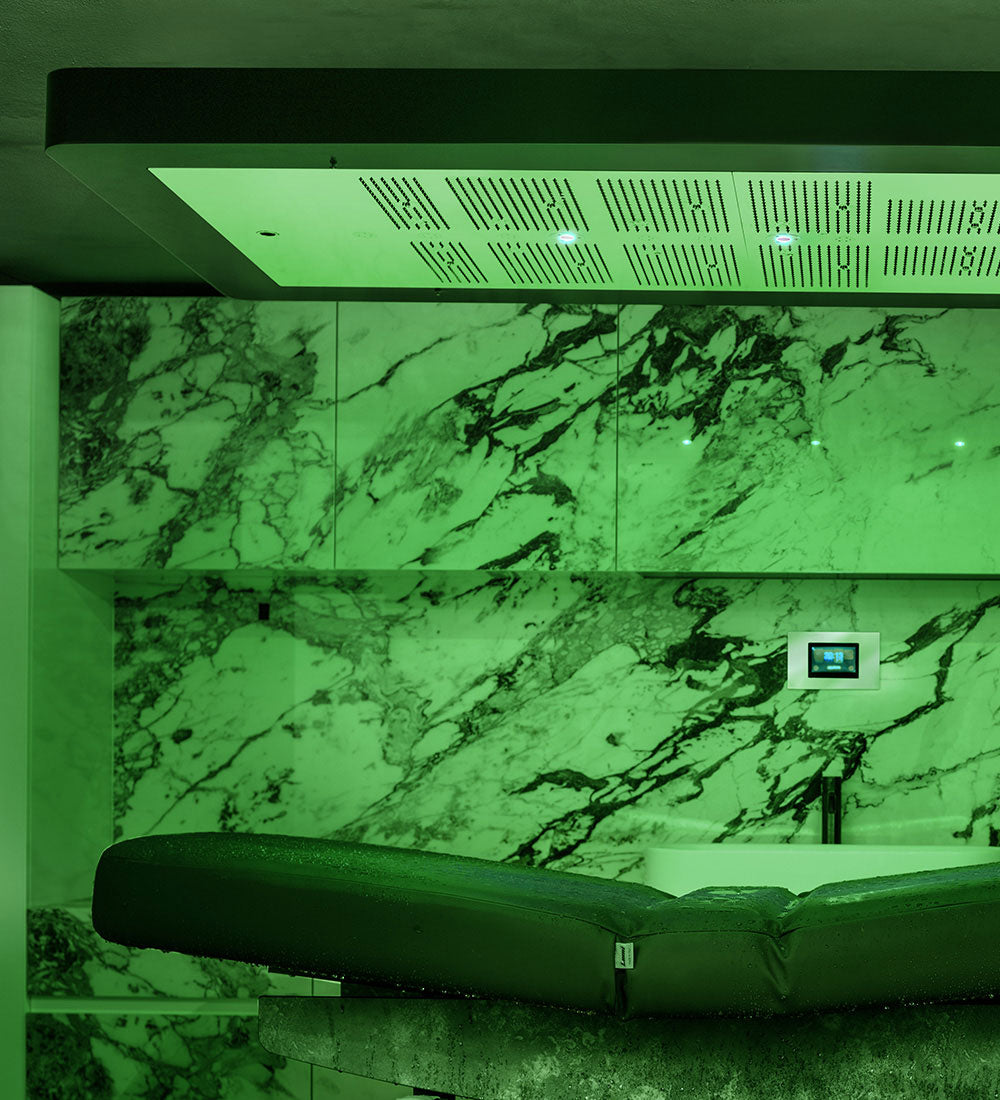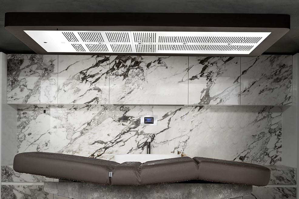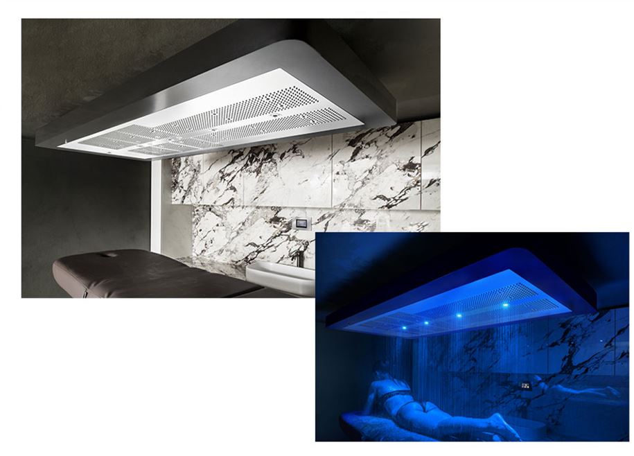Evolution of the Vichy shower, Aquamotus is a professional horizontal shower for the reproduction of 16 types of massage in the rain, featuring programs for targeted areas - cervical, dorsal, sacral, and legs. Also includes an autonomous operation and chromotherapy. Features 4 water patterns: rain, nebulizers, aerated jets, and waterfall. 4 chromotherapy spotlights. 4 programs with different durations (10, 20, 30, 40 mins)