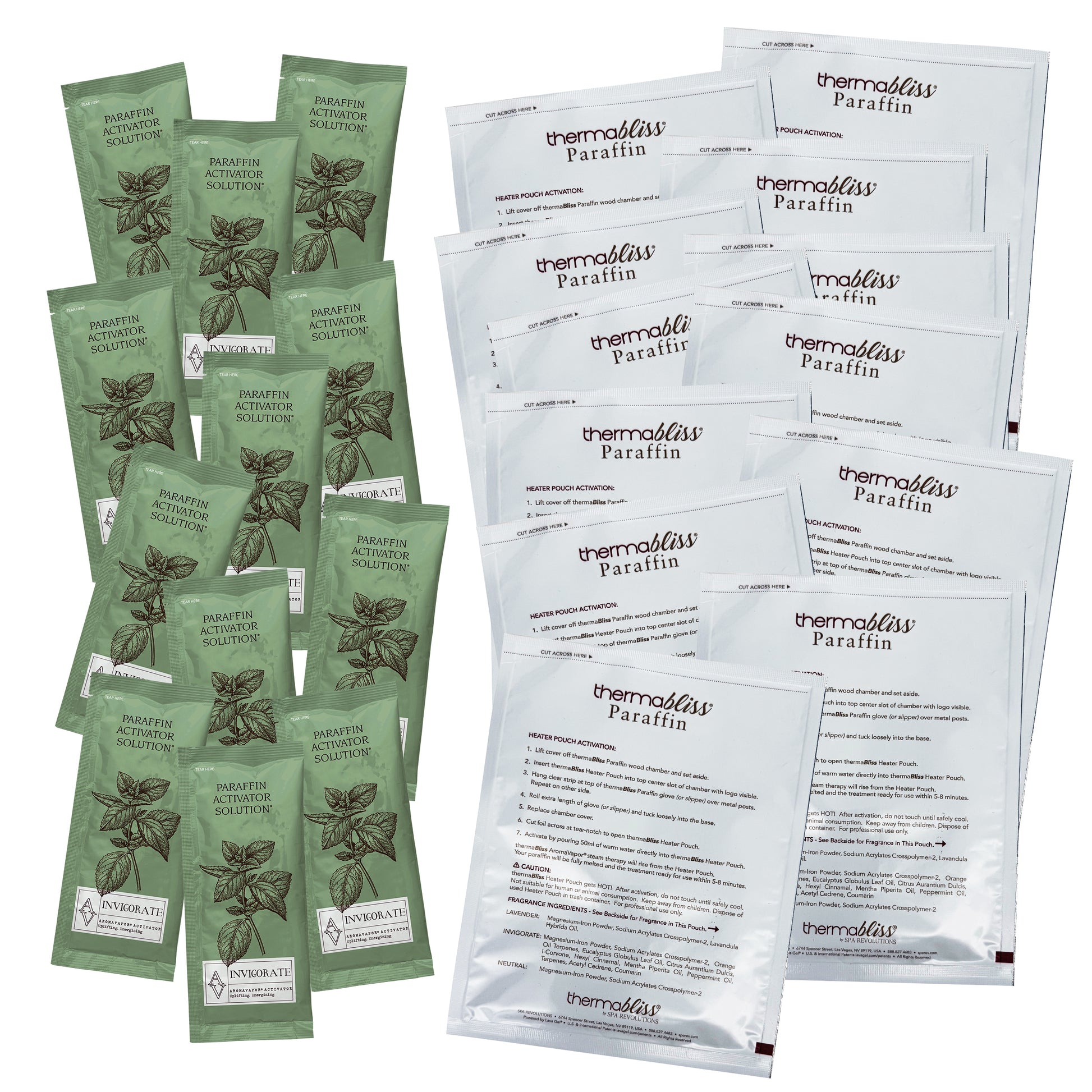 Each kit includes 12 AromaVapor pouches and 12 heating pouches, available in Lavender, Invigorate (Eucalyptus), and Neutral scents. With a simple, effective formula using salt water and fragrance, this solution seamlessly integrates into your current paraffin system.