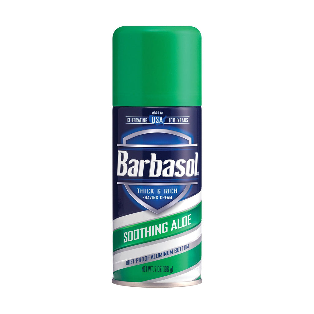 Help soothe dry skin and give clients the confidence that comes from a close, comfortable shave with Barbasol® Soothing Aloe Shaving Cream. A must-have amenity for your locker room, this premium formula contains aloe and has a calming scent. It delivers exceptional razor glide to minimize irritation and produces a rich, thick lather that moisturizes and lubricates even the toughest facial hair. Rustproof aluminum bottom prevents rust rings. Made in the USA. White. 7 oz.Ingredients