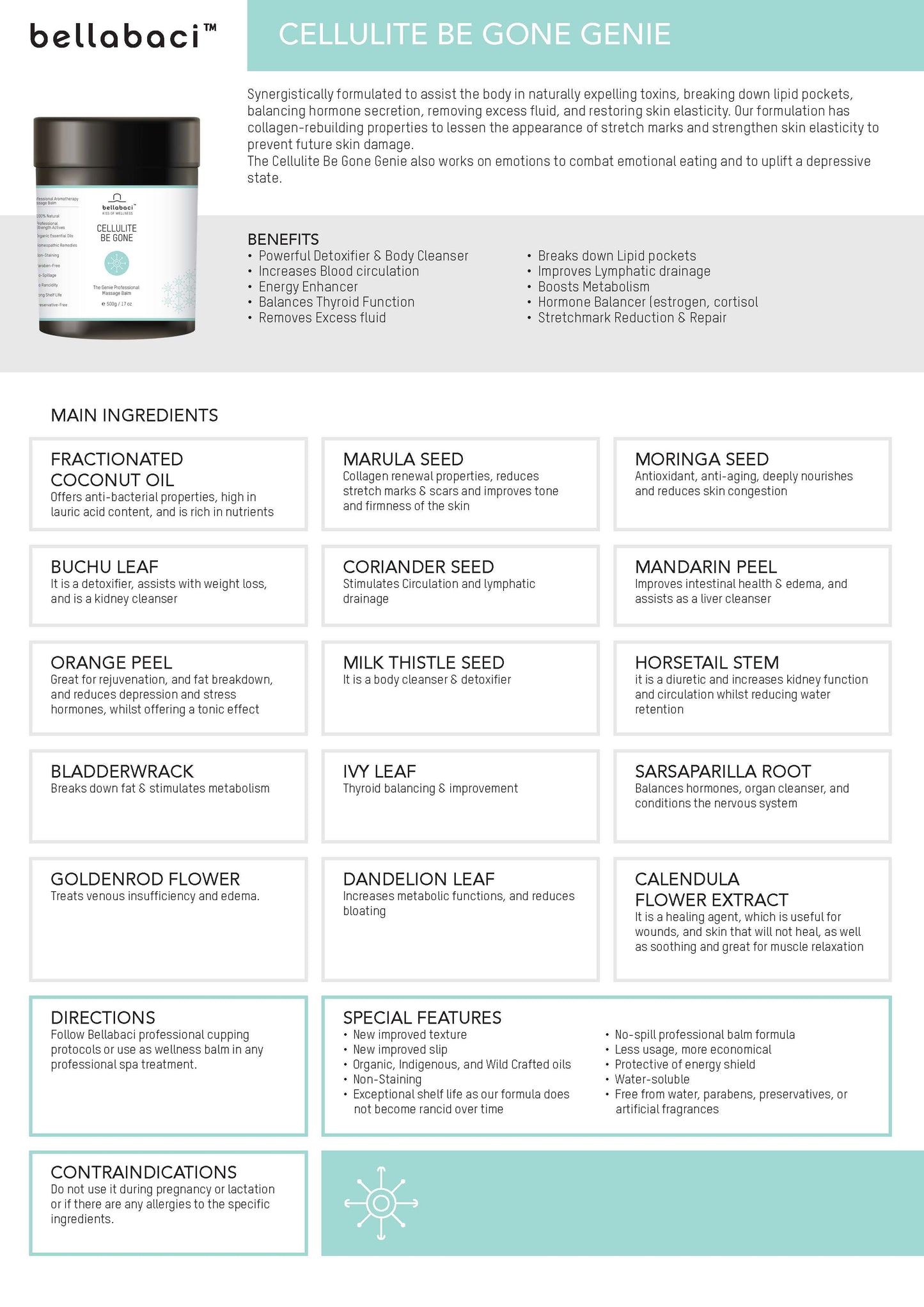 Blur the appearance of cellulite with this specially formulated balm. Developed for massage and cupping treatments that work to remove excess fluid, Cellulite Be Gone also supports elasticity to defend against future skin damage. All balms are enriched with a superior concentration of therapeutic vegetal oils, essential oils, and homeopathic extracts.