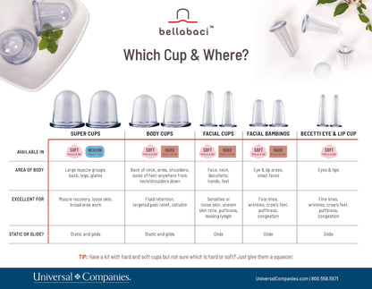 This kit is excellent for spas and spa professionals to begin offering cupping services. Created to accommodate body and facial cupping treatments, this kit contains the perfect variety of cups and strengths.