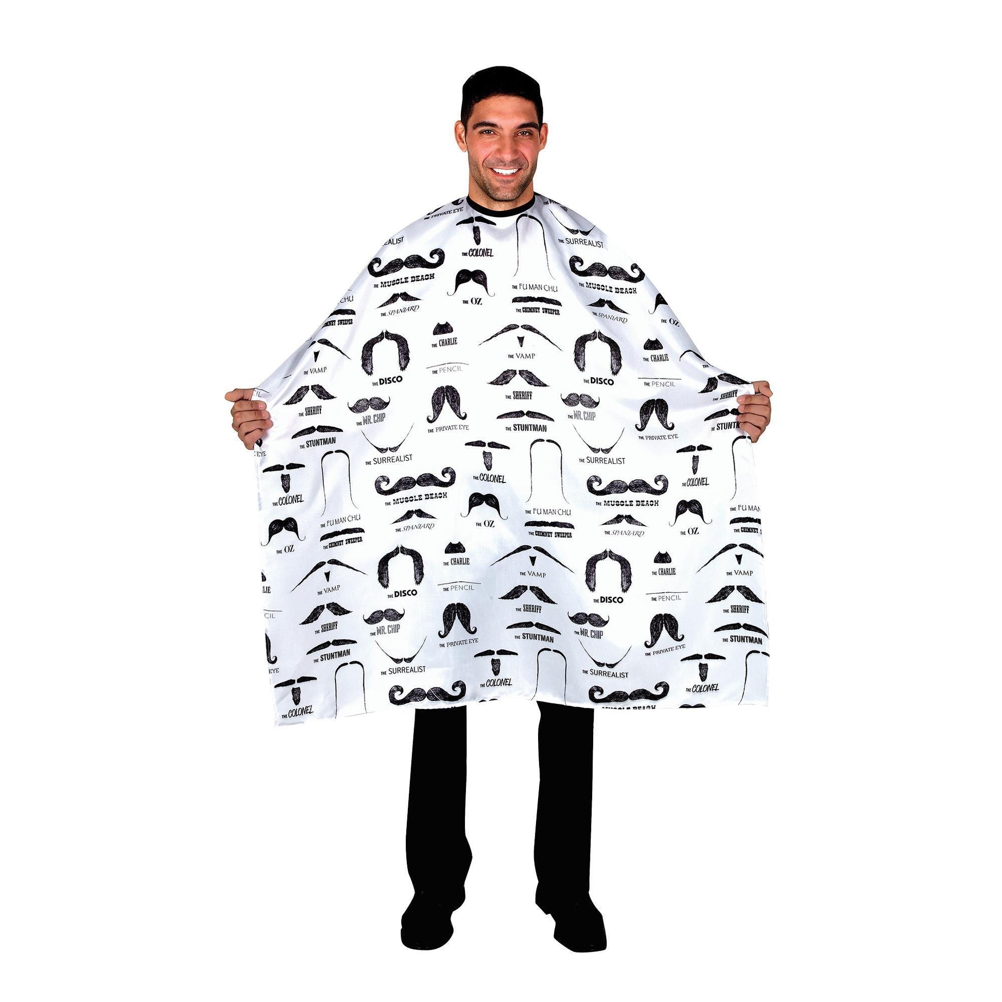 Featuring a multitude of mustaches, the Stache Styling Cape will bring a dapper look to your salon or barbershop. It is lightweight polyester, water resistant, machine washable and has a snap closure. White with black mustaches. One size fits most. 45"W x 60"L- Choosing a selection results in a full page refresh.
