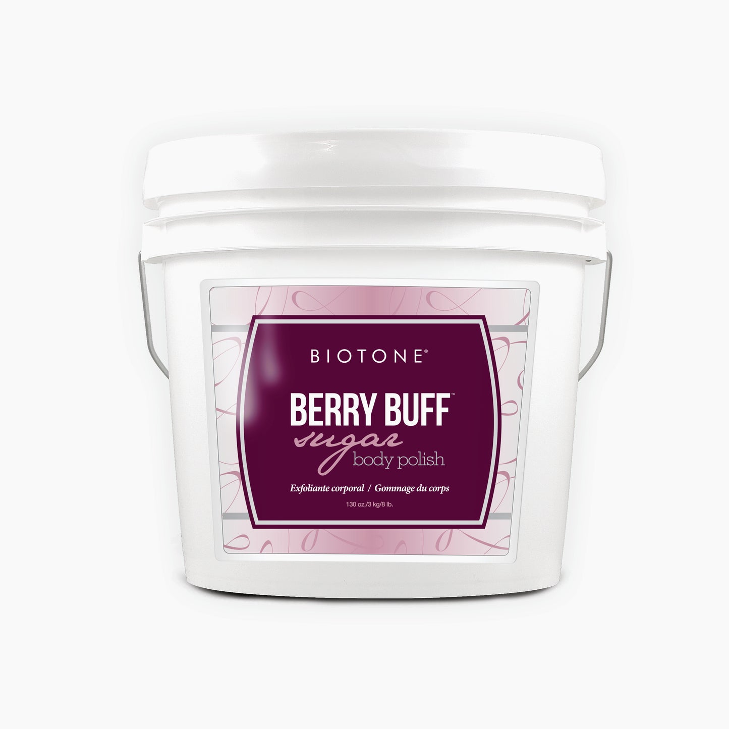 Biotone's Sugar Body Polish Berry Buff features the sweet scent of fresh picked raspberries. Natural exfoliants, such as raspberry seed powder, makes for the ultimate body polish, while pure cane sugar and nature’s gentle buffers moisturize, eliminating dry skin. With a rich, buttery feel, it can be used daily to keep skin looking radiant, soft, and silky smooth. Good for dry room. 1 gallon.