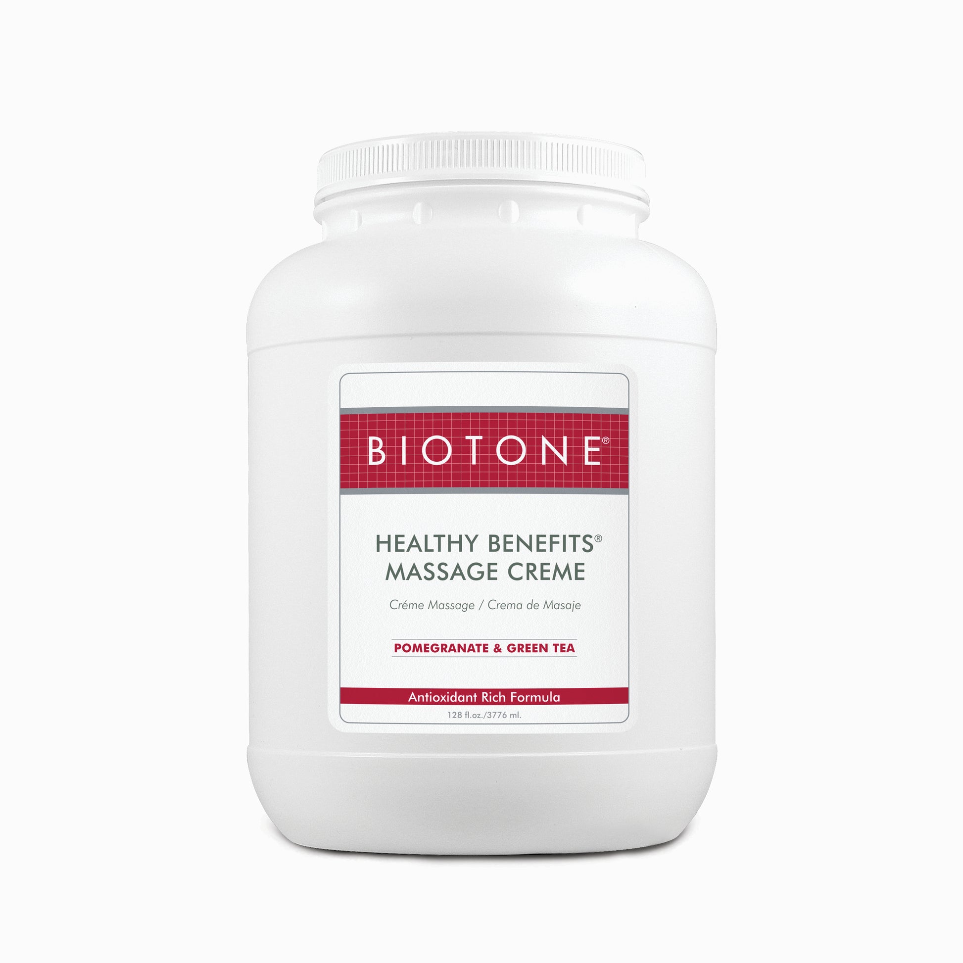 Healthy Benefits Massage Creme features a thick, rich formula with the antioxidant power of pomegranate, green tea, white grape and grapeseed extracts. Known for their ability to protect and restore, these active botanicals deliver nutrients to the skin, promote healthy circulation, and help fight free radicals. Can be used for all modalities from high glide circulatory to slow deep-tissue.