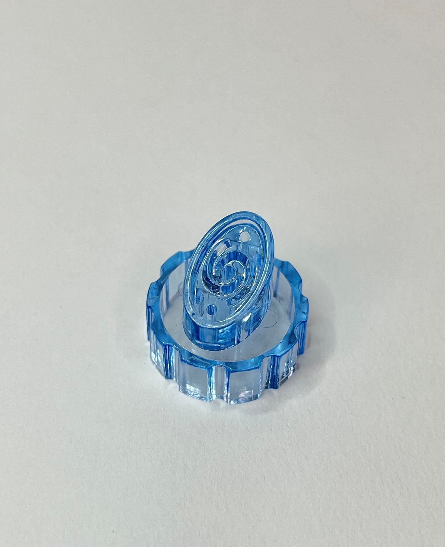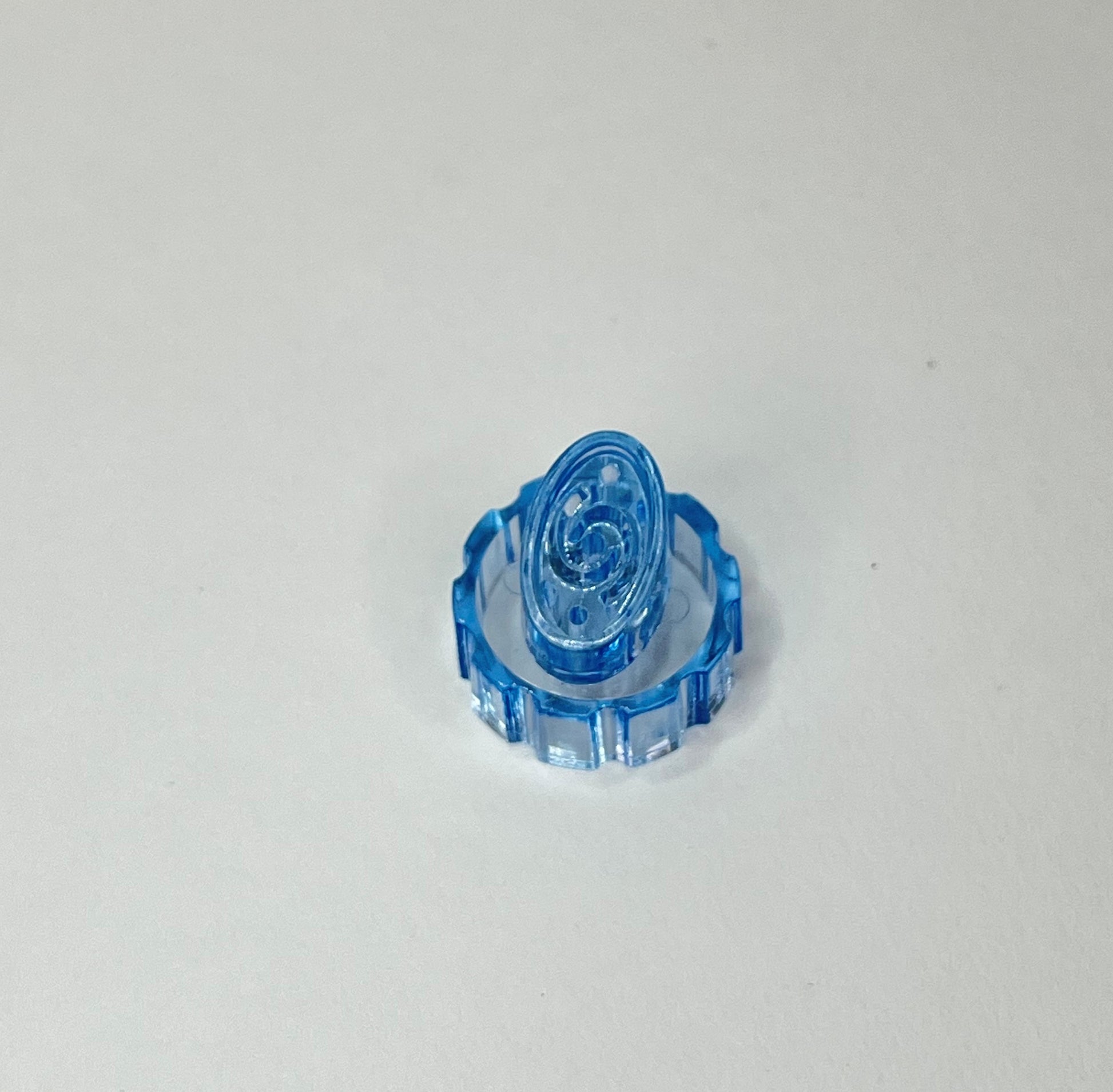 This AquaBoost blue cleaning tip does not have holes in it and is used at the end of the day for cleaning the system.