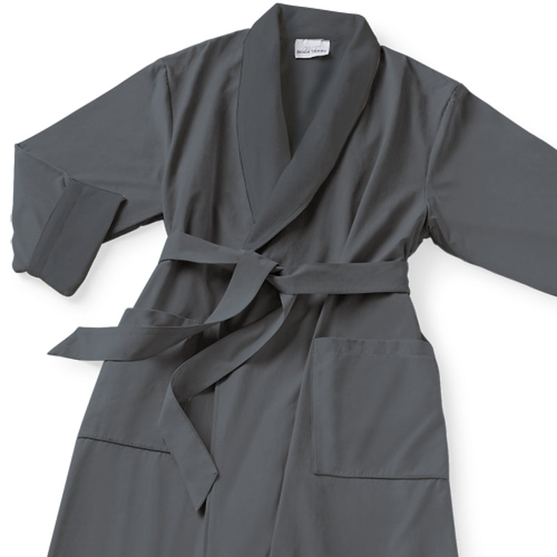 No spa or pool outing is complete without a casual yet elegant microfiber bathrobe. Featuring a plush microterry lining and roll-up collar and cuffs, this robe is the new standard for high-end hotels and resorts worldwide. Shell: 85% polyester / 15% nylon. Lining: 100% polyester. Available in 4 colors.