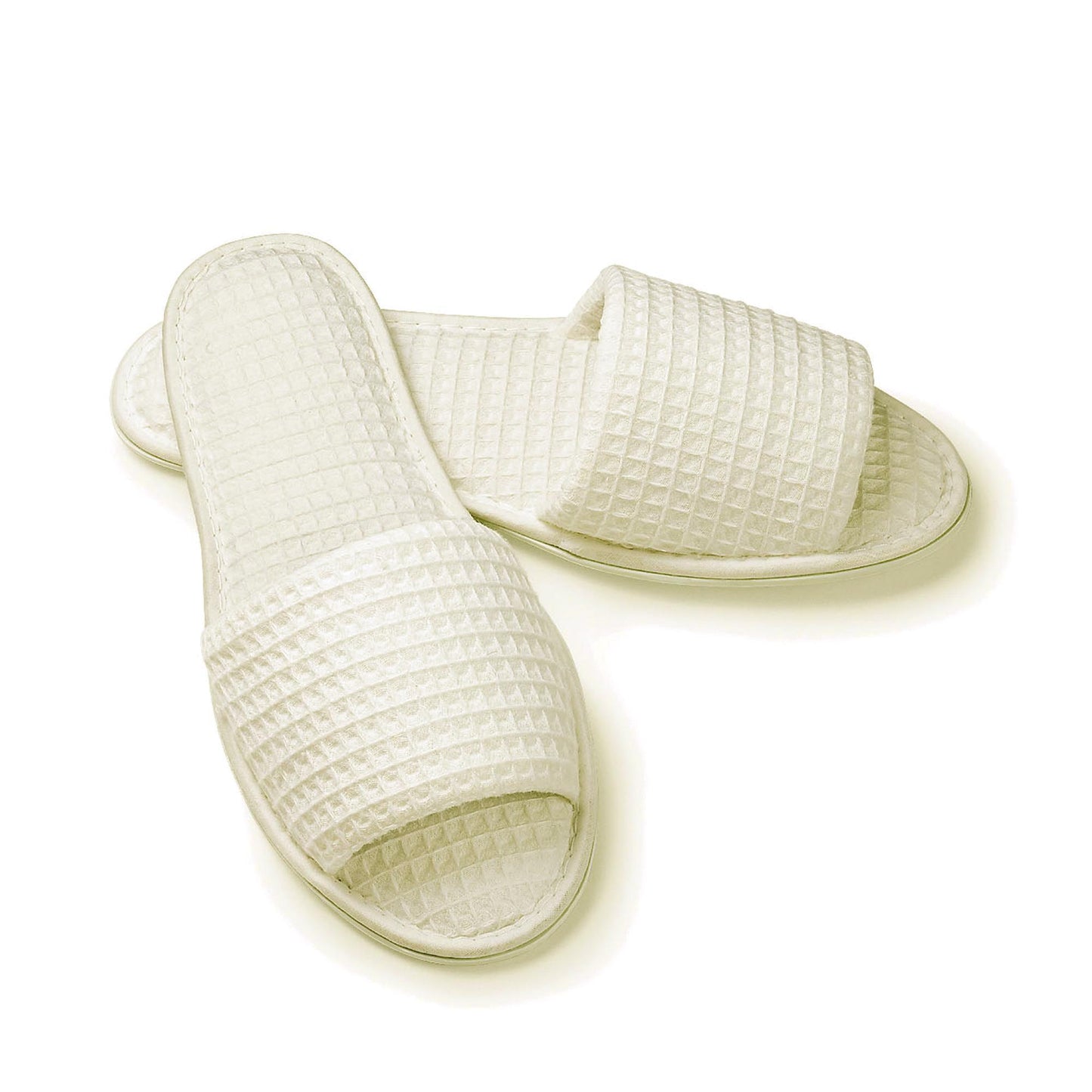 Lightweight and durable, these Waffle Weave Slippers can be machine washed on gentle cycle. Great for in-spa use or retail sales. White or Ecru.