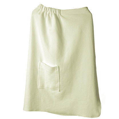 These knit waffles are characterized by their modal fibers which have a unique softness. Wrap is piped in self color. Lightweight yet durable, this comfortable wrap features an elasticized top with a snap closure. 45% Cotton 45% Modal 10% Poly.