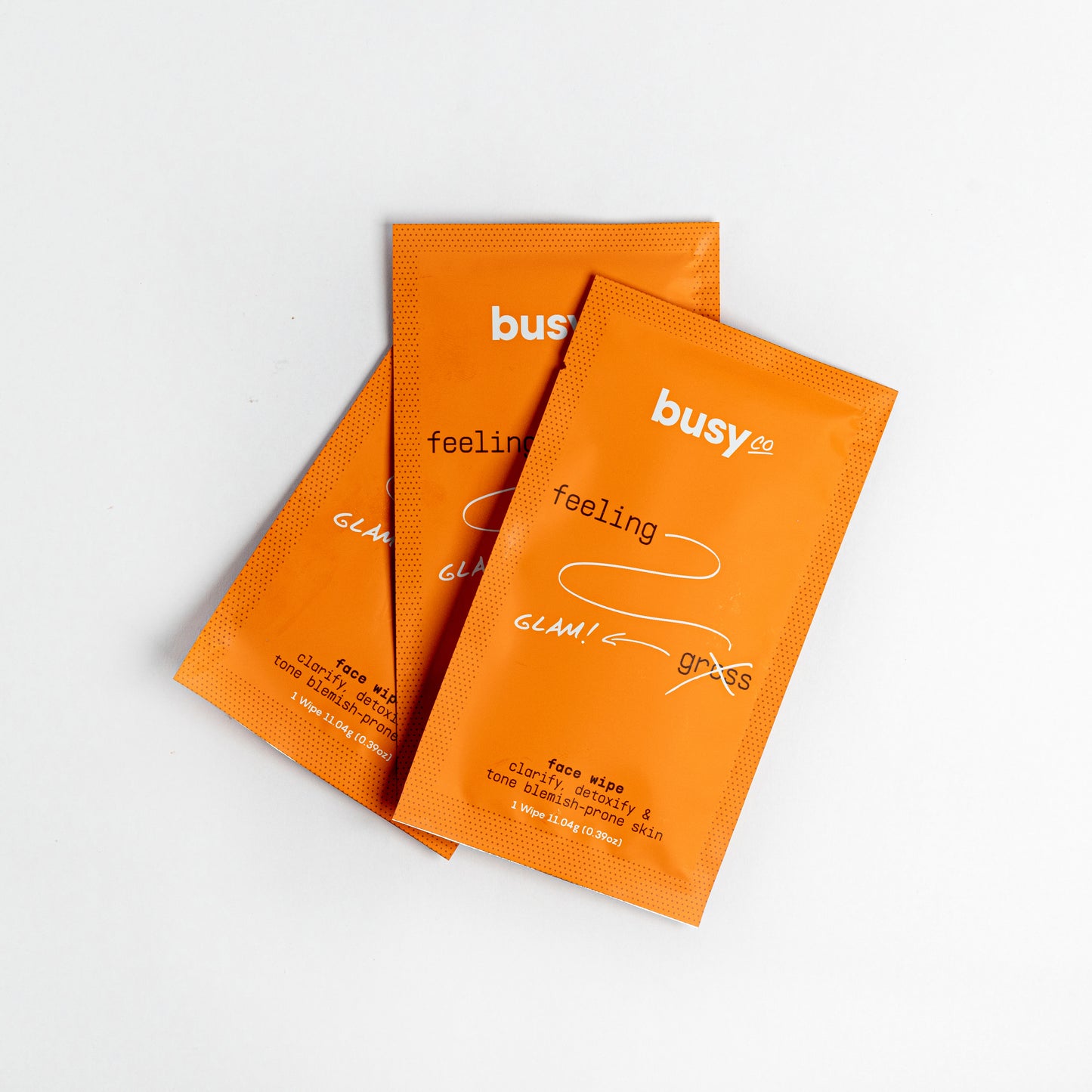 Offer Busy Co. wipes in your locker room or treatment rooms as a complimentary amenity to guests. Once they experience the convenience and effectiveness of these wipes, they'll be more likely to purchase them from your retail boutique for home and travel use. Each case of Busy Co. comes packed with 8 retail ready boxes, or you can sell each sachet individually. The suggested retail is $12.00 per box or $1.50 for individual sachets.
