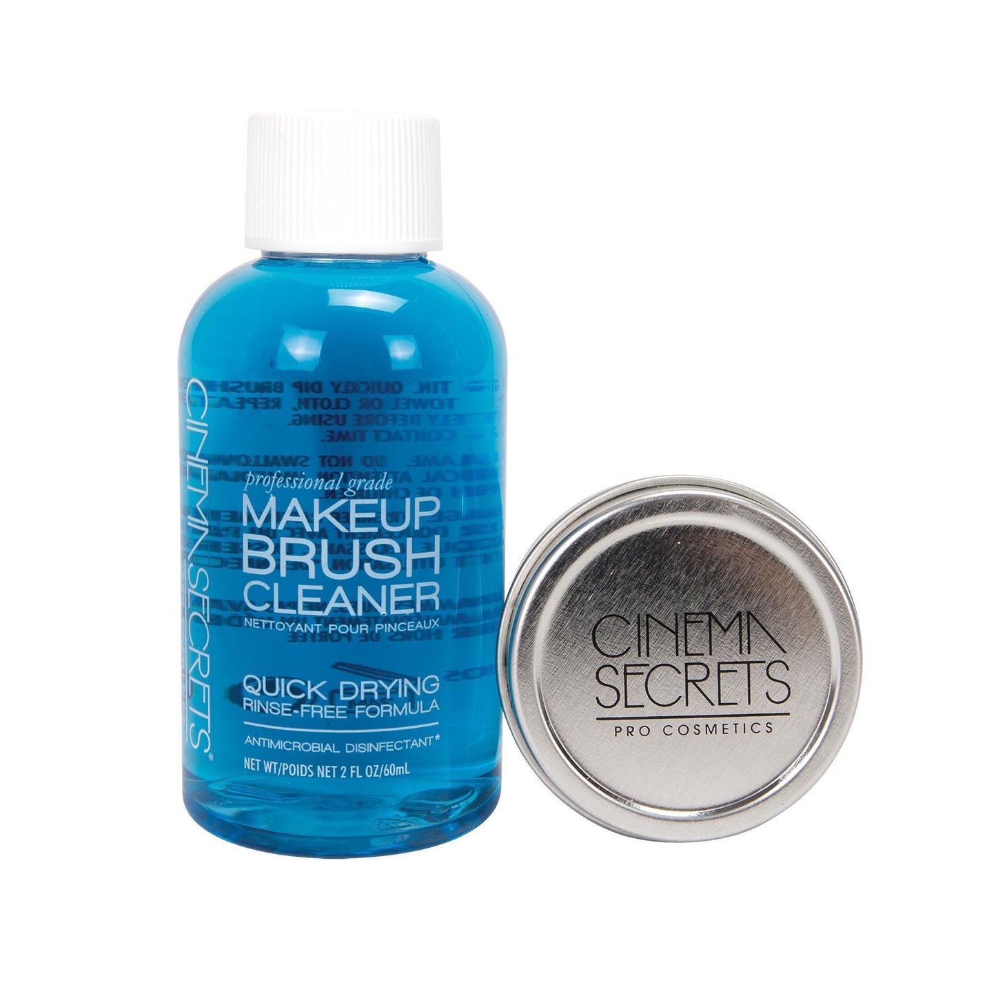Wash away stubborn dried makeup with Cinema Secrets® Professional Makeup Brush Cleaner Starter Kit. This quick-drying, rinse-free formula cleans, conditions, and deodorizes both natural and synthetic makeup brushes, leaving a pleasant vanilla scent. Can also be used to clean wax, powder, and liquid from other tools and implements. Includes cleansing tin. 2 fl. oz.Ingredients