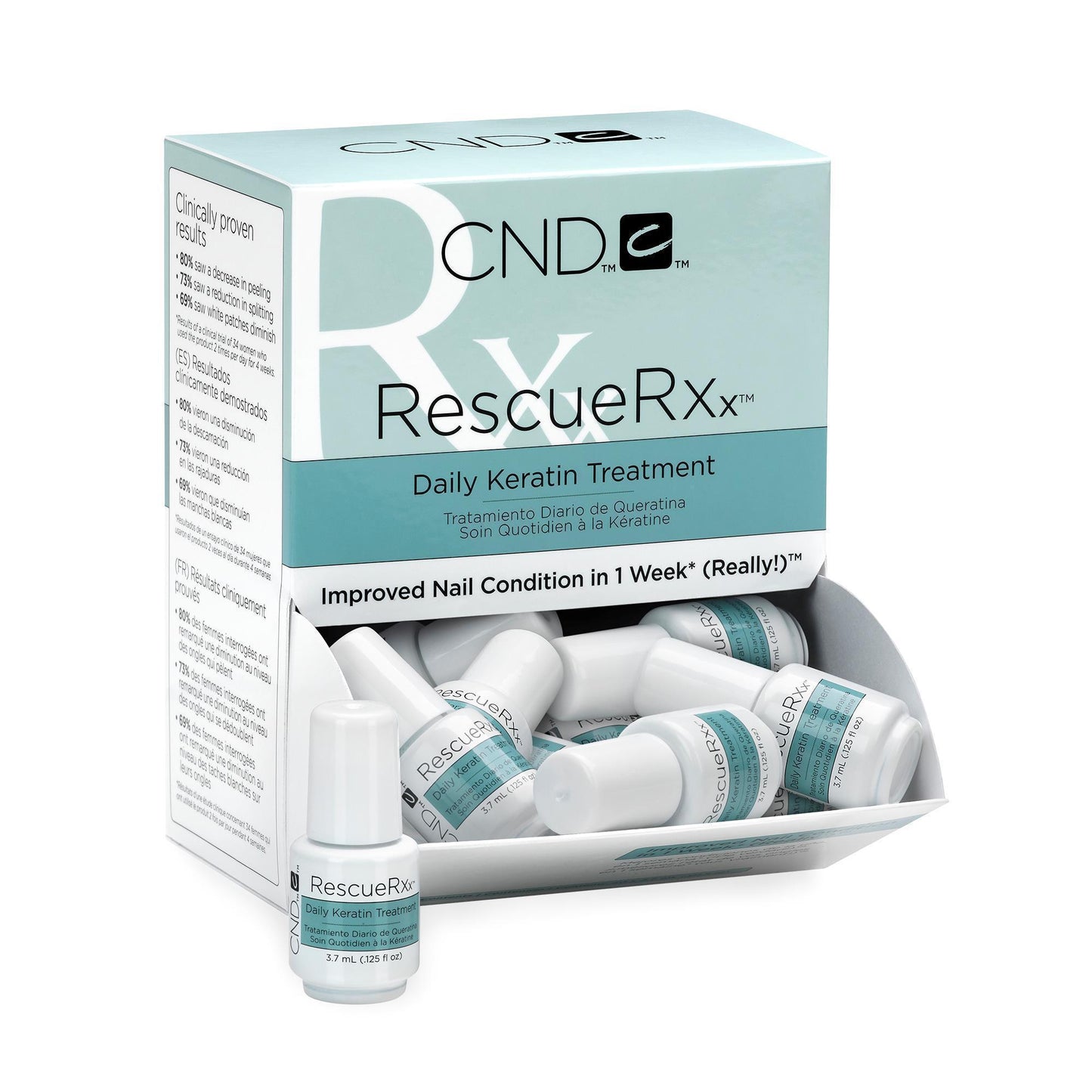 RescueRXx is a highly effective daily keratin treatment that helps repair damaged nails with the power of keratin protein and conditioning jojoba oil. With daily use, peeling and white spots are dramatically reduced. Jojoba oil with keratin proteins bonds to the natural nail to strengthen weakened or damaged nails while deeply conditioning.