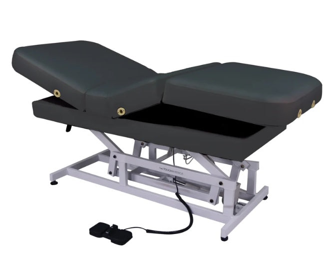 The ever-popular HiLo offers an impressive height range of 19"-34" and is ADA-compliant. Its substantial base of support makes it suitable for massage and a variety of other treatments. Includes a wired foot pedal to operate the motorized height lift.