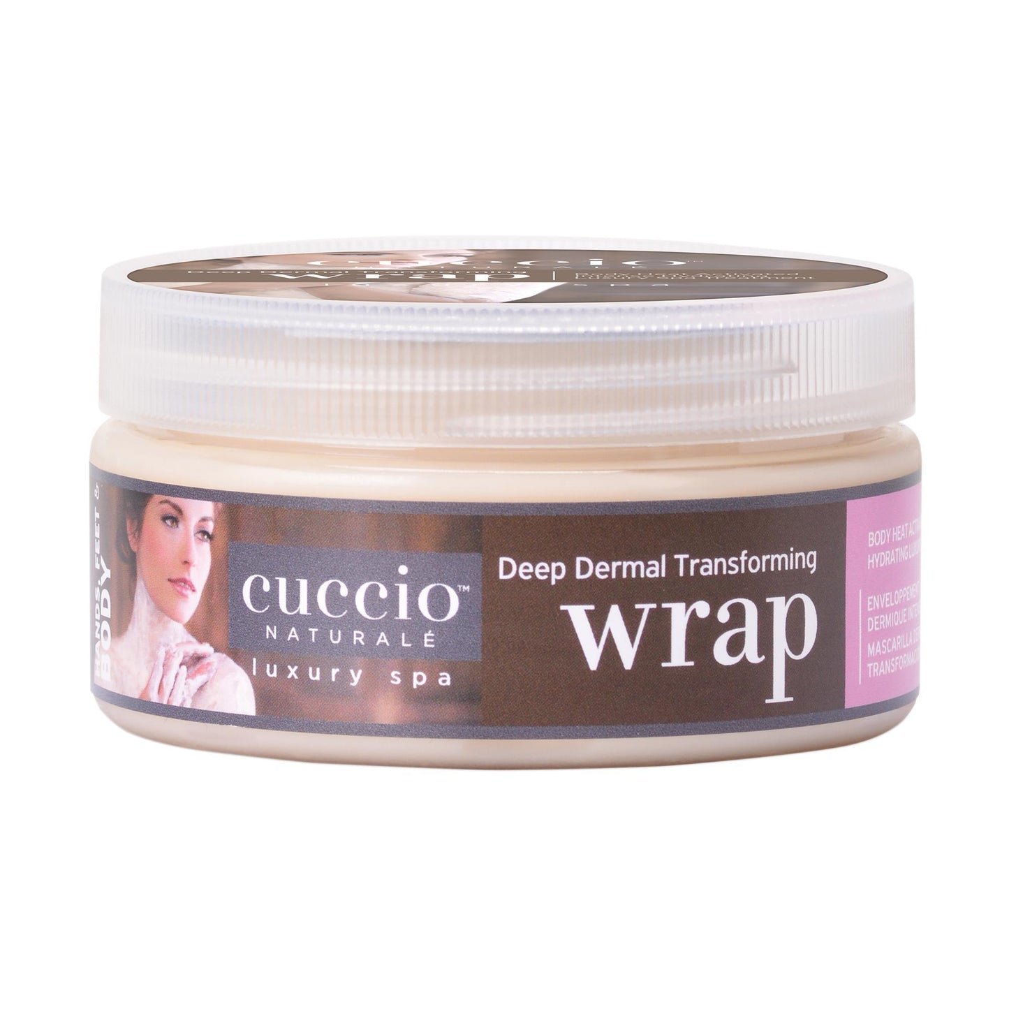 Cuccio Deep Dermal Transforming Wrap features a body heat activated intense hydration formula that helps reduce the appearance of lines and wrinkles. It transforms from a thick moisturizing cream wrap to a translucent serum as it penetrates the dermis of the skin. Can be used with warm moist towels, heated mittens, or booties.Ingredients