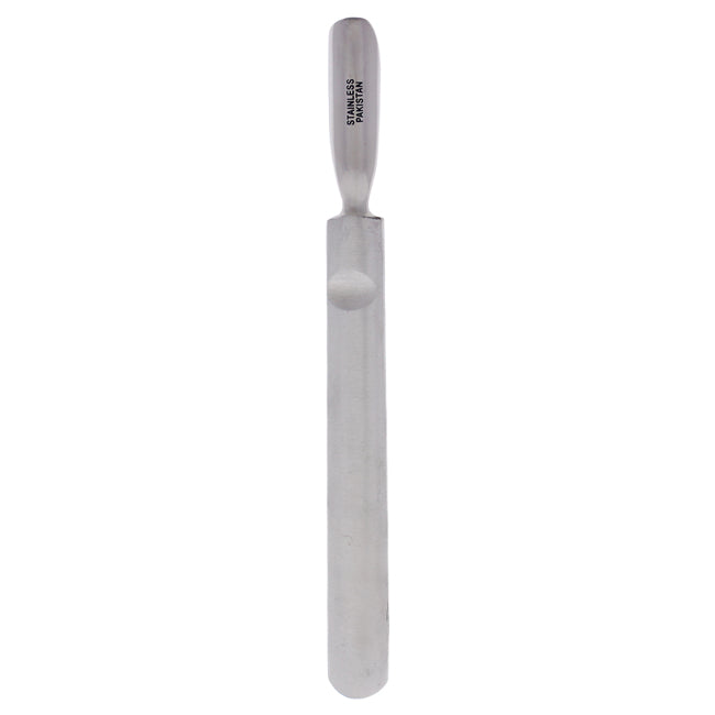 This curved spoon pusher conforms to the natural shape of the nail when pushing back cuticles. Stainless steel.
