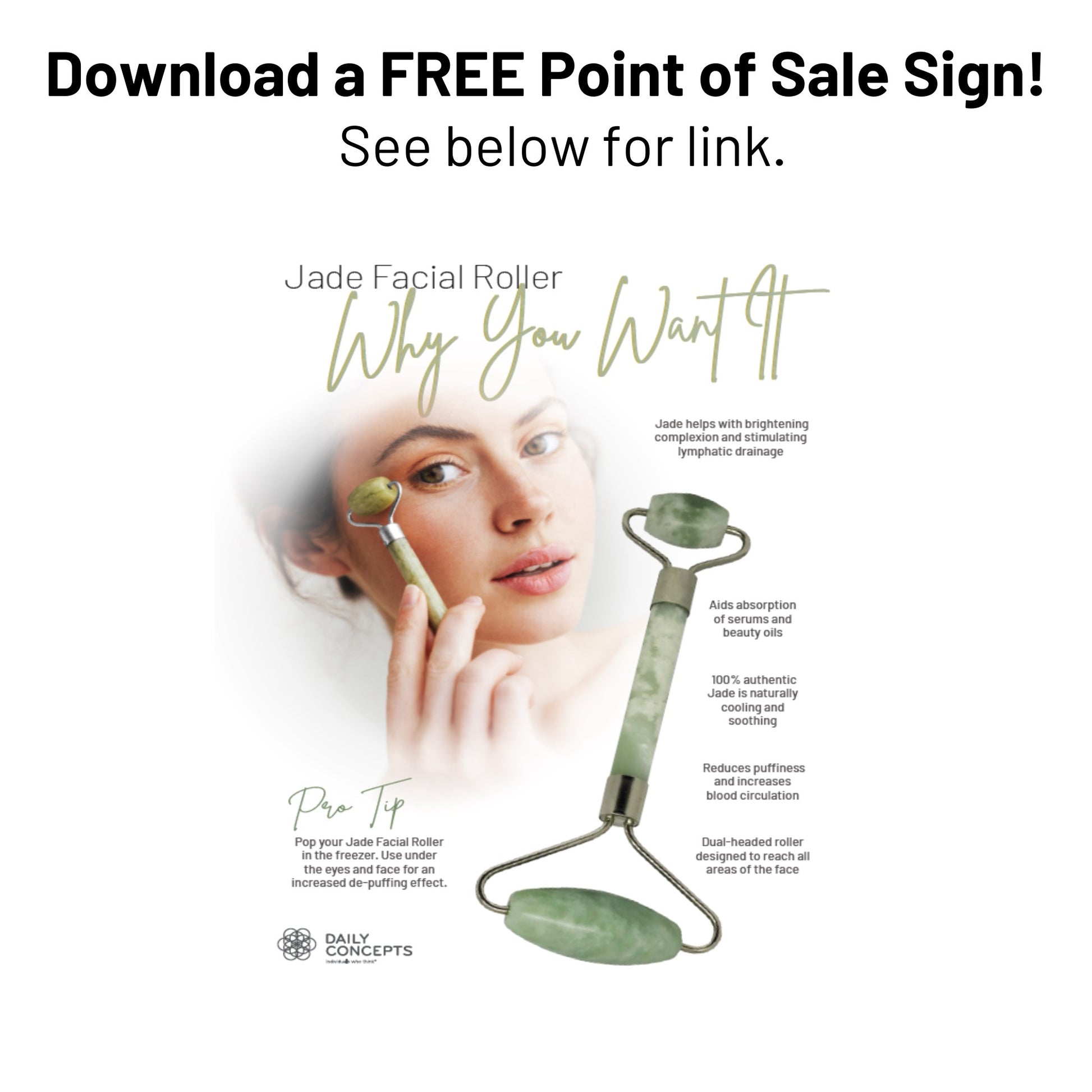 - 1 – 5” x 7” Daily Concepts Jade Facial Roller Display Graphic (FREE)