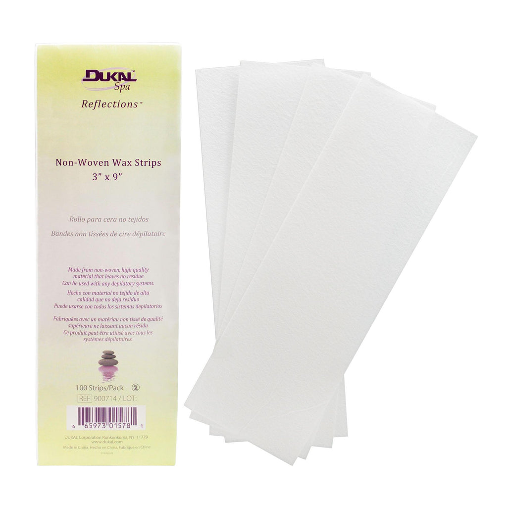 Deliver precision waxing services with the Reflections™ Non-Woven Waxing Strips from Dukal™. These precut strips are ideal for waxing legs and the bikini area, and can be used on all depilatory systems without the worry of stretches, tears, or leftover residue. 100 count. 3" x 9"Purpose and Benefits