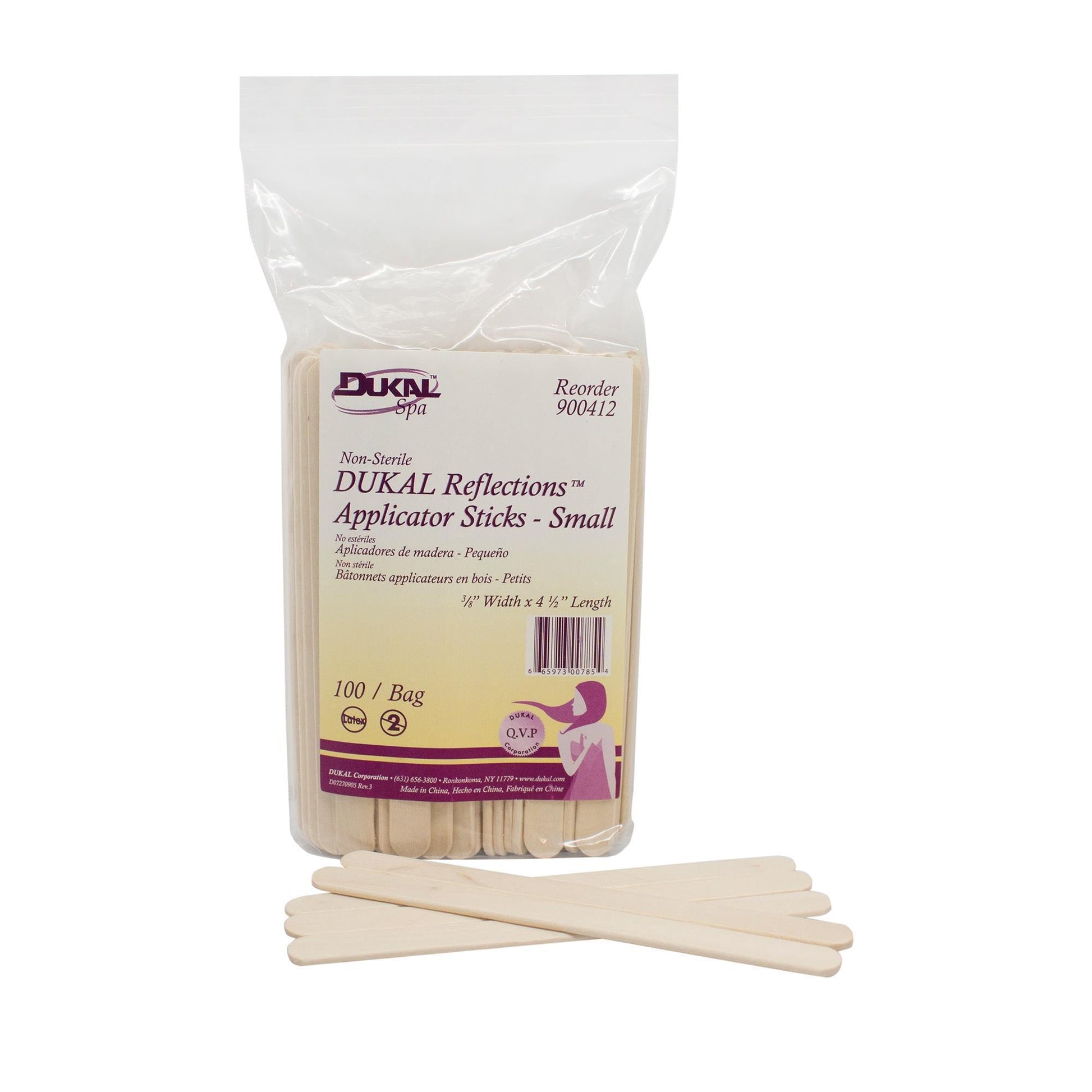Reflections™ NS Wood Applicators from Dukal™ are the affordable and disposable solution to a wide range of spa services. They're perfect for wax application, as well as mixing and applying product all over the body. Resealable bag. 100 count. Popsicle. 0.375" x 4.5"