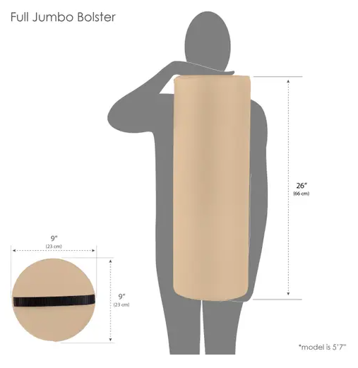 The Jumbo Round Bolster is a foam-filled bolster with zippered vinyl cover and strap handle. It provides an extra level of comfort and support and helps in relieving muscle strain.
