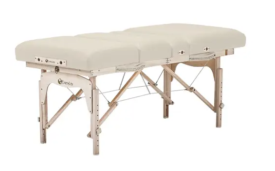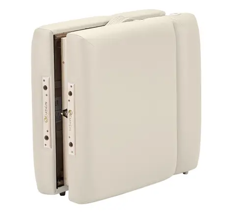In a hotel room, on the deck, by the pool, in a home–perform spa treatments wherever you want with the versatile and economical Calistoga™ Portable Salon Table. Crafted from solid hard maple, the Calistoga allows you to offer facials, massage, and other mobile spa treatments. It folds away for portability and easy storage. The luxurious design features Earthlite’s Pro-Plush Deluxe™ cushioning system wrapped in buttery soft, durable Vanilla Creme Comfort-Flex upholstery. Carrying case is sold separately (C91309).