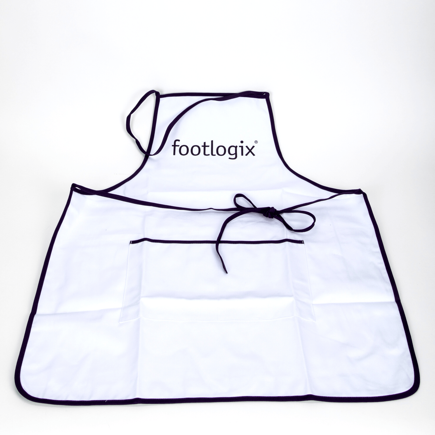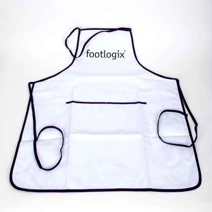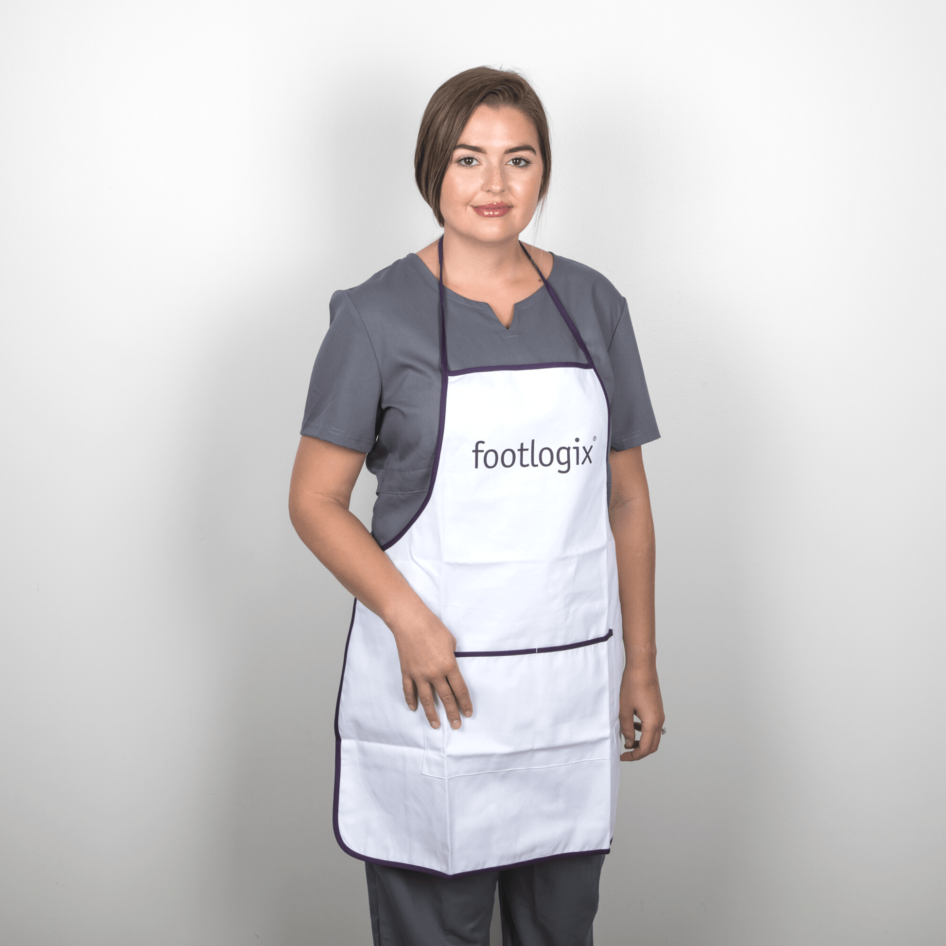 Look professional and protect your clothes with this sturdy Footlogix Professional Apron. It features a tie closure and a generously sized front pocket. White with purple trim and ties. Cotton/Poly Blend.