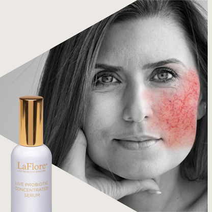Recent studies indicate an imbalance in the skin's microbiome as a major factor in rosacea's persistence.3,4 LaFlore's Live Probiotic Concentrated Serum stands at the forefront of innovative solutions, offering a unique approach to rebalancing the skin's microbiome and easing the symptoms of rosacea. LaFlore’s innovative formulation goes beyond symptom relief by targeting the underlying causes: