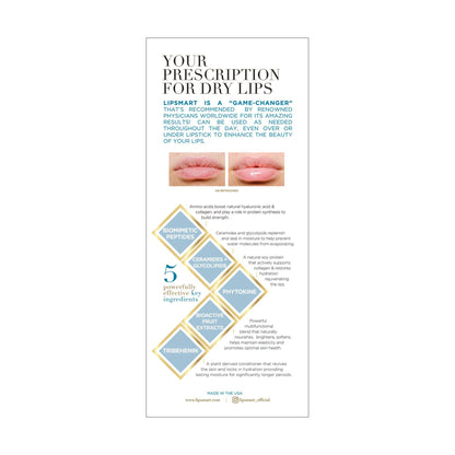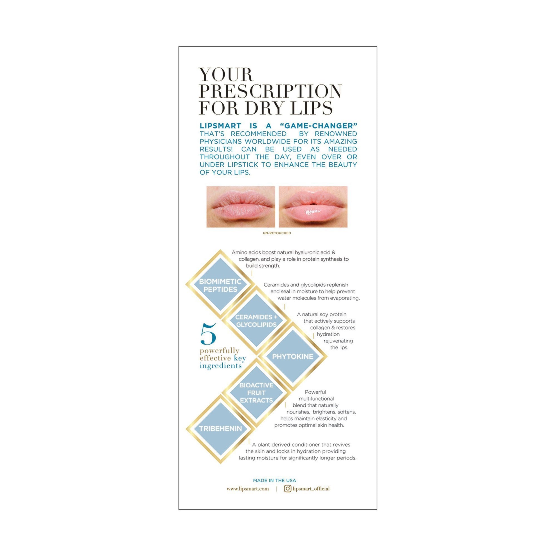 Help retail customers understand the hydrating technology behind Lipsmart® with these informational cards. Lipsmart Rack Cards fit in the back of the Lipsmart Acrylic Display. 12 cards.