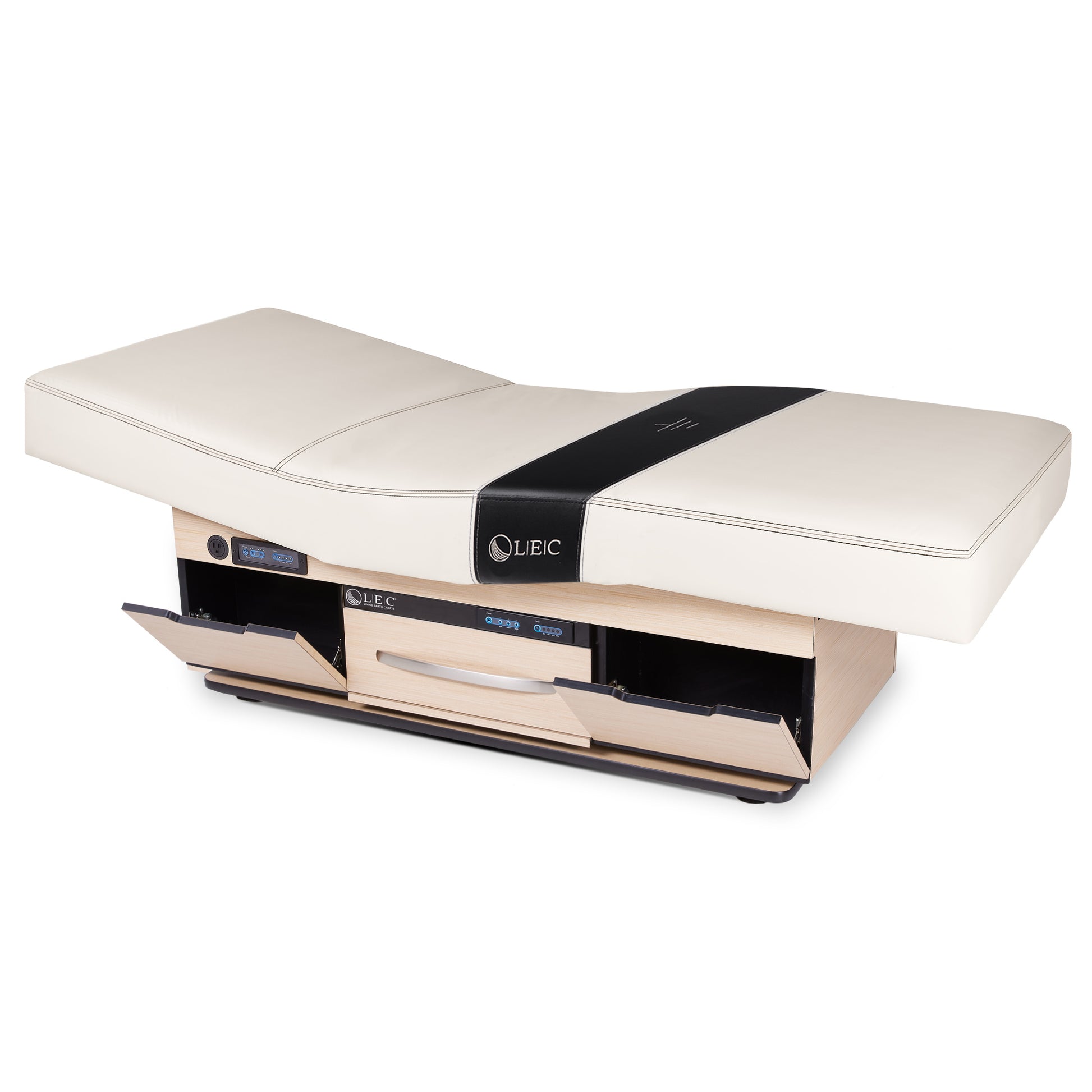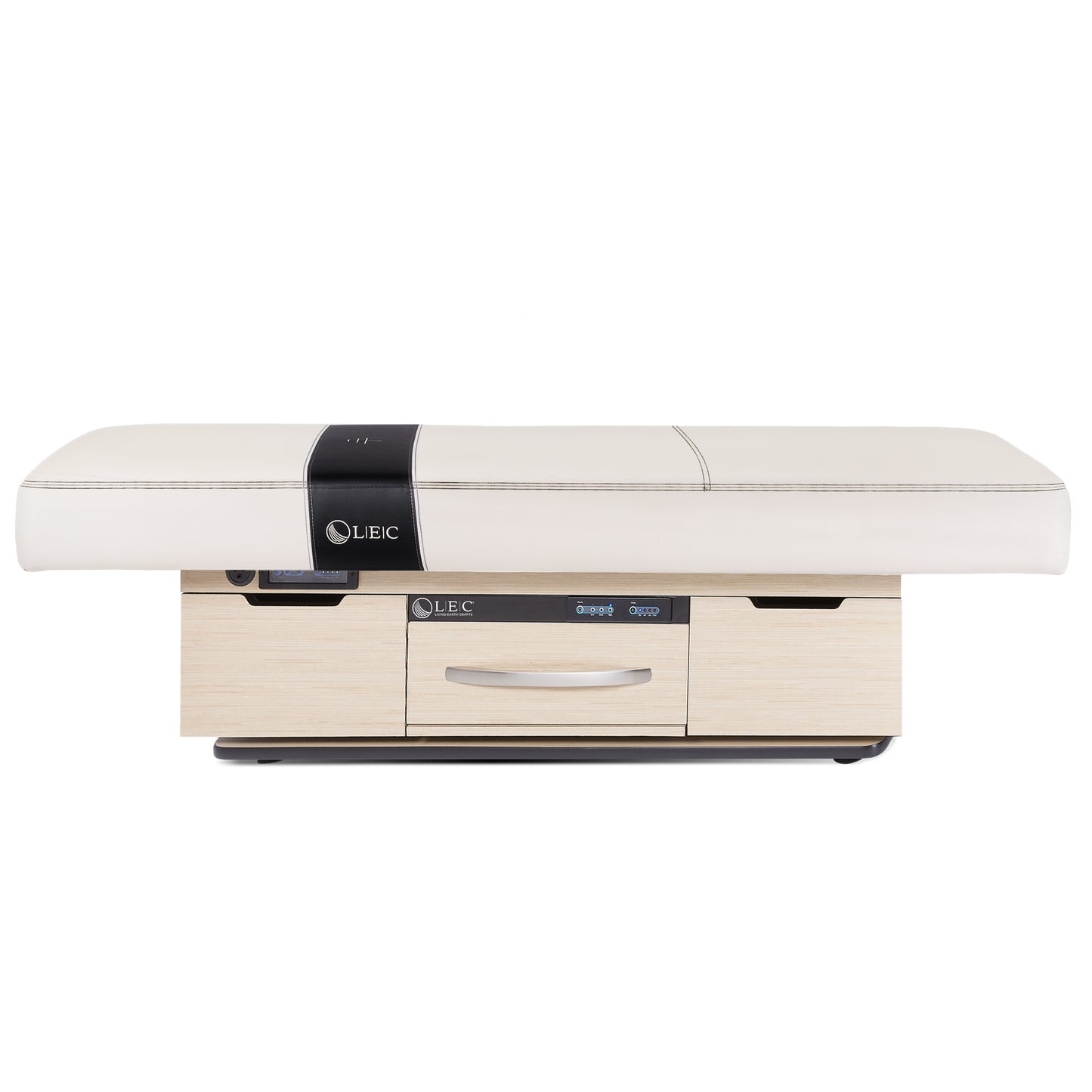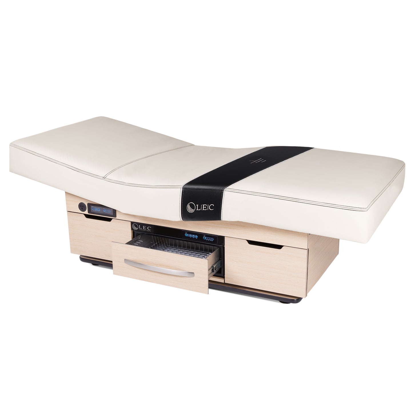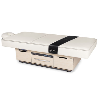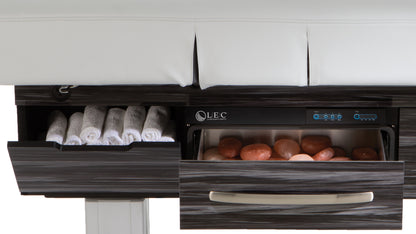 The newly re-designed Century City is one of the best-selling multipurpose spa treatment tables on the market. Now including both the ultra-luxurious 5.5” Strata Cloudfill™ replaceable SpaMattress™ and the Thermasoft™ Dual-Zone Embedded Table Warmer to enhance client comfort. Strata Cloudfill mattresses now include EarthConnect™, the industry’s first grounding and EMF protection system.The Century City also features a lower than normal standard height range and the option of choosing a lower height of only 22”. This option changes the mattress to a 3” Strata foam mattress. Convenient Digital Warming Drawer keeps your robes, herbal packs, dry stones and towels within reach during treatments. This versatile tables easily transforms from facial table to massage table with ultra-quiet electric actuators controlling the height and top adjustments. Also includes the PowerPort™ Power Management System with recessed outlets built onto the table to eliminate cord clutter by powering additional equipment right from the table.