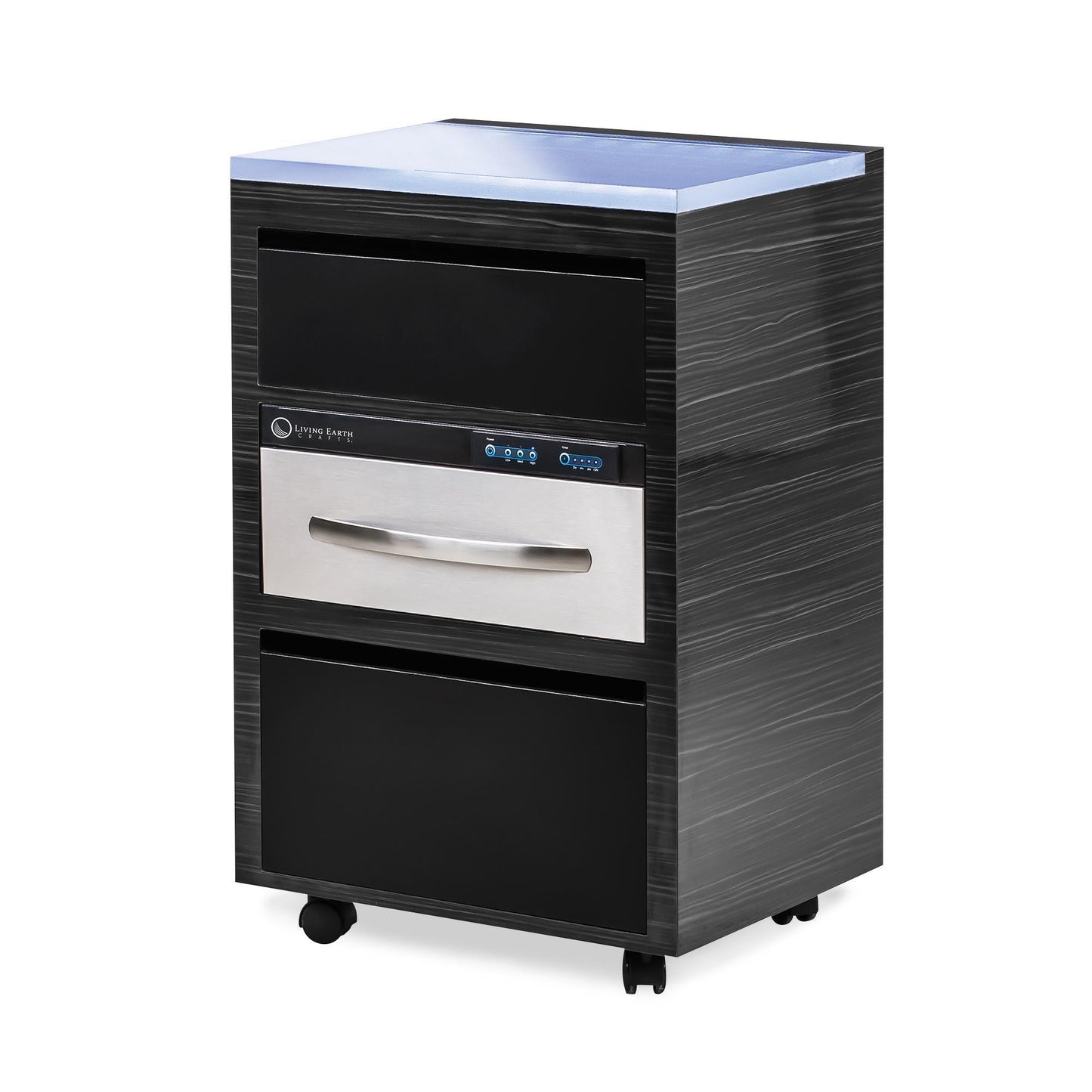 Imagine streamlining your treatments while adding a touch of modern glamour to your spa. The Designer Glass Trolley +Studio from Living Earth Crafts makes it a reality. This sleek and versatile workstation boasts a back-lit IceBlock surface, bathing your workspace in cool, efficient light. The option of one or two storage drawers keep essentials organized, while a digital warming drawer pampers clients with toasty towels or stones. Choose from a range of chic laminate finishes and lacquered drawer fronts to curate the perfect spa aesthetic. And for added convenience, a surge-protected power outlet ensures your tools are always within reach and ready to go.