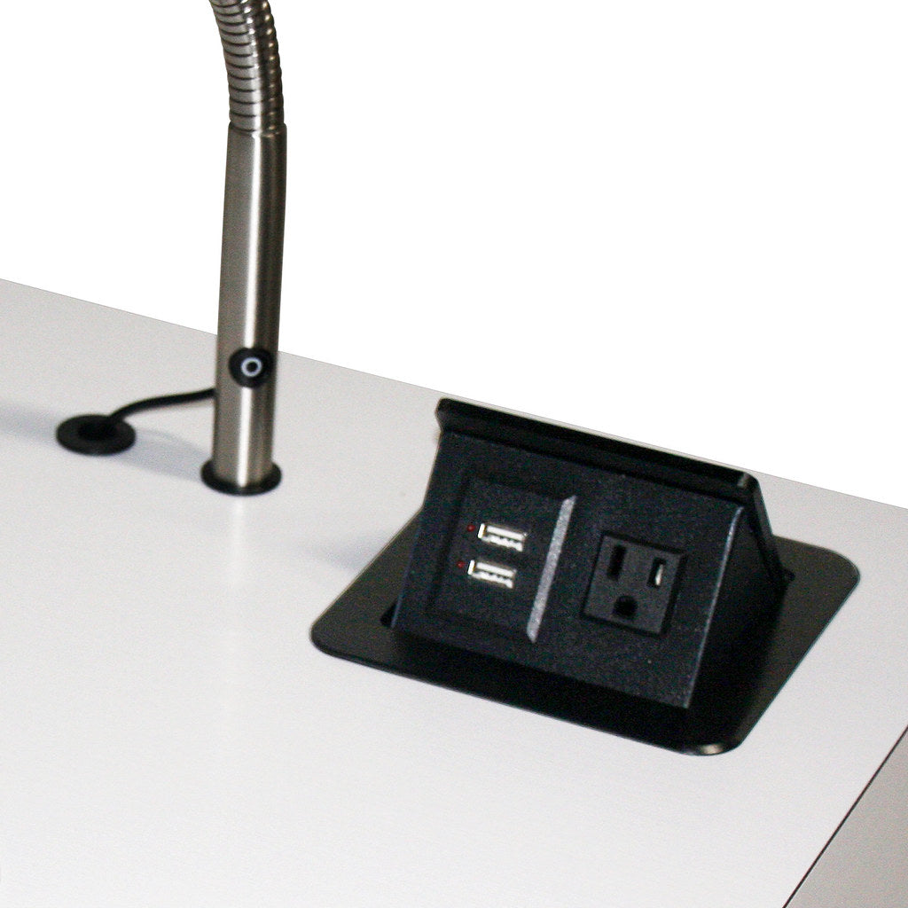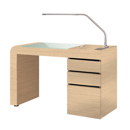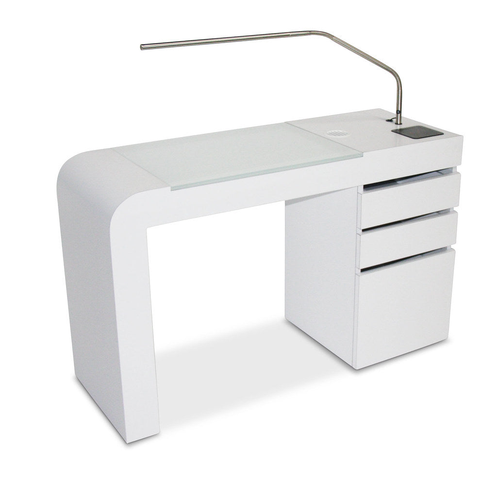 Impress your clients with the Luma NailSpace, a striking new design from Living Earth Crafts meant to provide a world-class experience for the client and a seamless experience for the nail technician. This precision-crafted piece was designed with multiple storage drawers, standard laminate / glass finishes, stunning and spacious desktop surface, and an LED lamp for those requiring extra lighting.