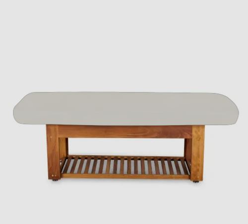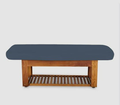 The Napa La Mer™ is the perfect solution for wet treatments, massage, Vichy showers, body wraps, mud masques, scrub treatments, and more. This beautiful shelf table is crafted with treated water-resistant materials, making it perfect for wet rooms, salt rooms, or outdoor areas. Composed of Teak Wood and Stainless Steel Hardware, this table is rugged and with the Aqua™ Vinyl and Marine Grade Foam, is resistant to mildew.