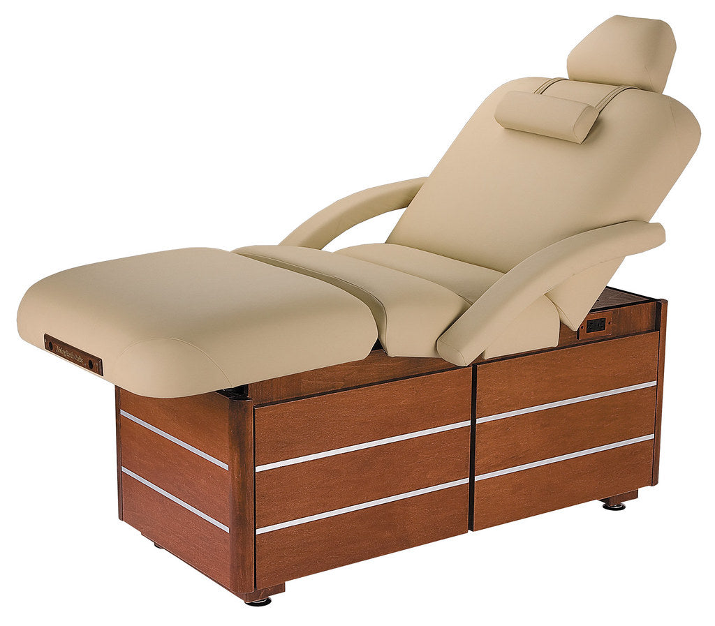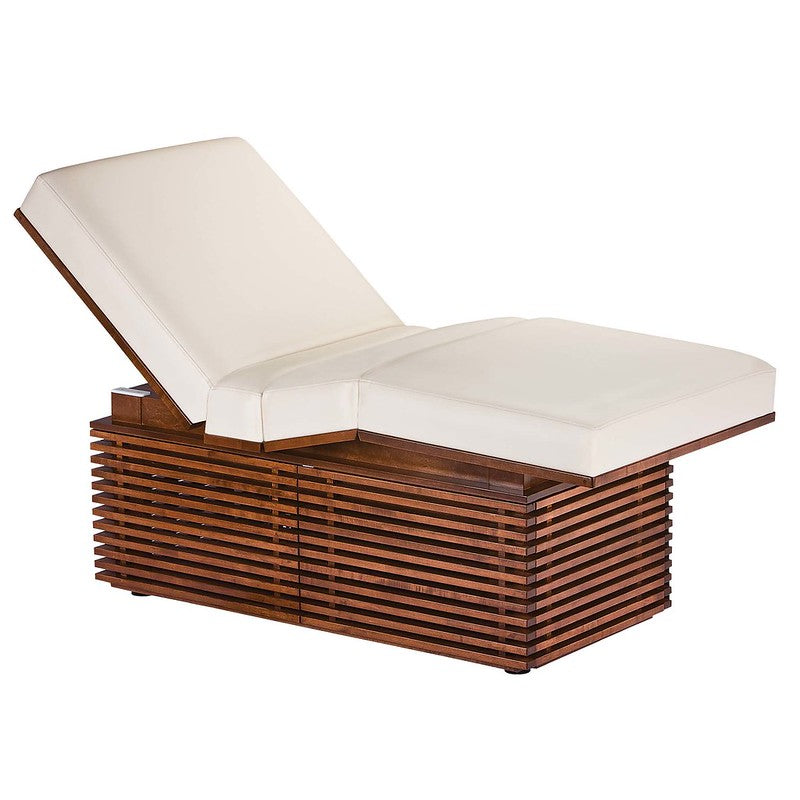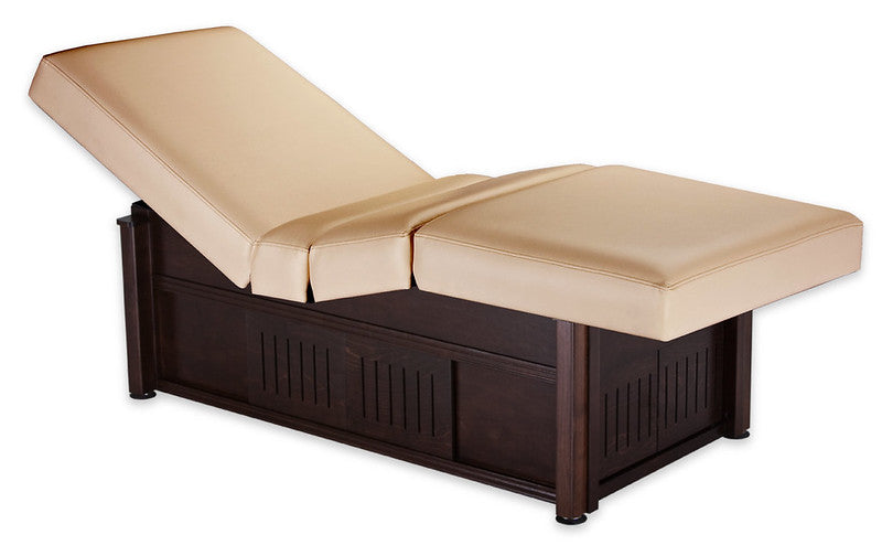 Modern Base - The striking modern design, inspired by the work of renowned architect, Frank Lloyd Wright, emphasizes natural elements and sweeping horizontal lines. The precision crafted; hand finished hardwood construction presents a fresh approach on classic treatment table designs.