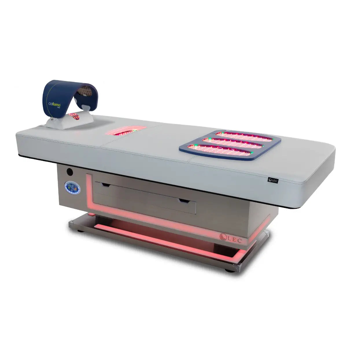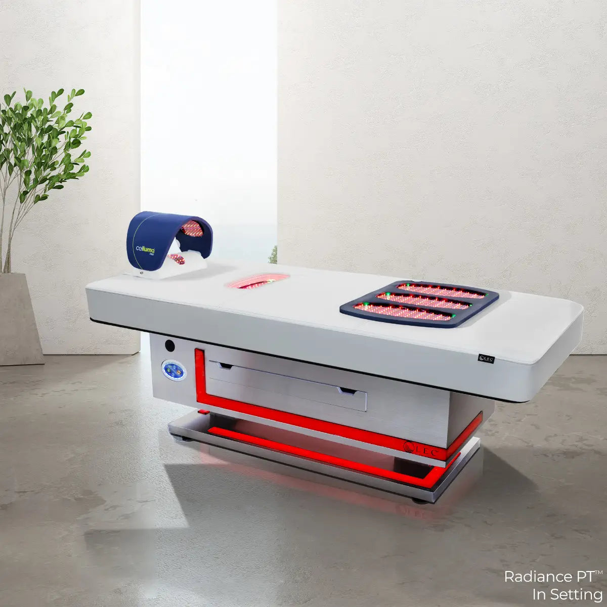 LEC is proud to introduce the Radiance PT™, the industry’s first multi-purpose pulsed LED light therapy treatment table. The Radiance PT makes it easy to utilize Celluma®’s FDA cleared LED light therapy into face and body treatment protocols to dramatically enhance guest benefits and experiences such as Body Contouring, Anti-Aging, and Pain Management. The innovative Radiance PT treatment table incorporates proprietary neck and low-back LED light panels, a large flexible treatment pad, as well as a curved facial and scalp hood. Five (5) FDA cleared light therapy treatment options include pain management, inflammation, body contouring, wrinkle and skin repair, and hair restoration. Each incorporates wavelengths of blue, red, and near-infrared light energy simultaneously emitted in proprietary combinations to achieve maximum restorative results. Impressive treatment versatility enables spas to maximize its profitability with a wide range of attended and unattended treatments.