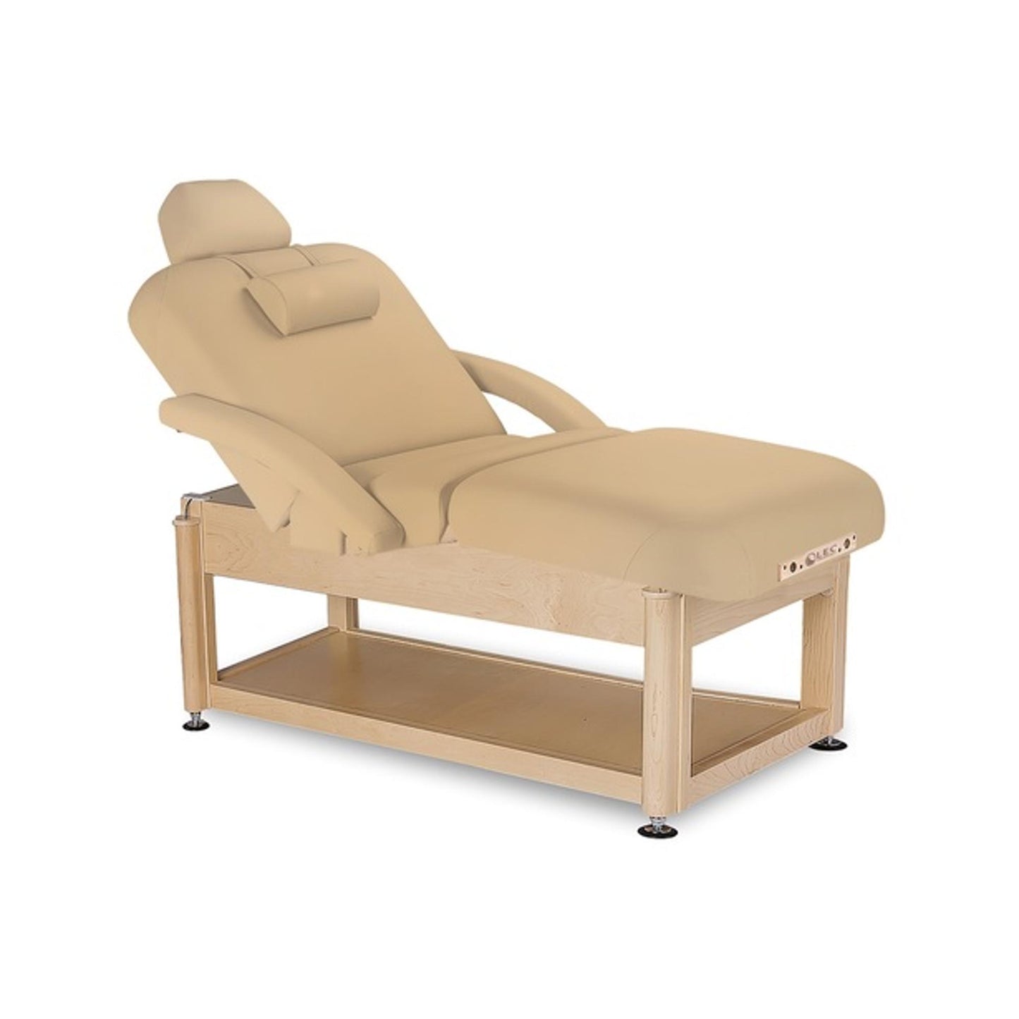 The versatile Serenity™ offers limitless possibilities at an incredible value. Customize to provide massage, facials, manicures, and more — the Serenity delivers elegance, comfort, and reliability while pampering the spa guest. This workhorse table features the strong and reliable Quietech II™ hydraulics that lift and lower the table effortlessly using the heavy-duty foot control. Its ease of use makes the Serenity the obvious choice for today’s busy spas. Standard with a convenient storage shelf base and massage flat top. Upgrading to the Pneumatic Assist Tilt or Salon Tops allows you to use the hydraulic assisted levers to adjust the backrest and knee portions of the table to infinite positions.