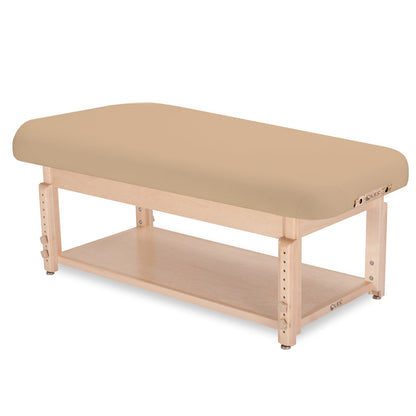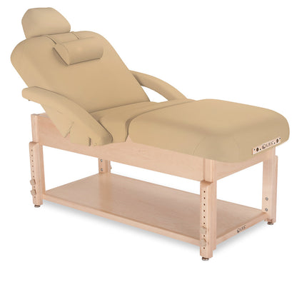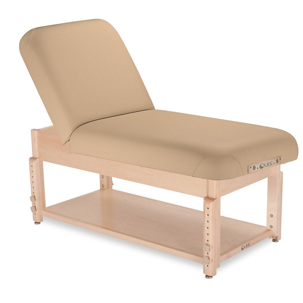 The Sonoma is ideal for private practitioners, gyms, fitness centers or home use. Crafted from solid maple, the Sonoma has manually adjustable legs, a sturdy frame, and choice of luxurious top and base options creating the flexibility to provide a variety of spa services. The Sonoma gives the ability to offer resort spa services virtually anywhere! Standard with a convenient storage shelf base and massage flat top. Upgrading to the Pneumatic Assist Tilt or Salon Tops allows you to use the hydraulic assisted levers to adjust the backrest and knee portions of the table to infinite positions. Some images may contain optional upgrade items.