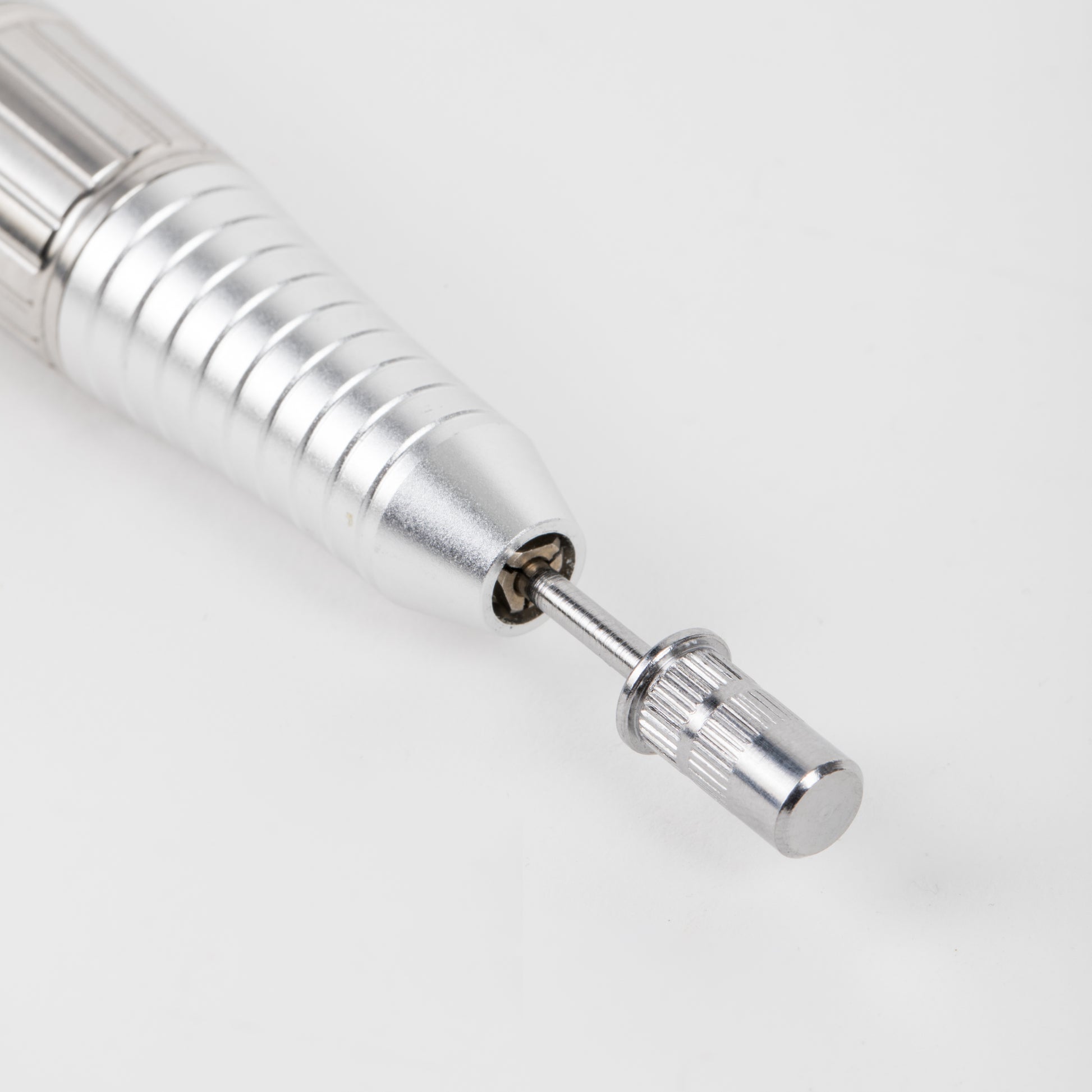 This bit has a ridged barrel shape to keep bands in place. It easily slides on and off for quick changing and will fit most nail drills and bands. Simple to clean and disinfect. Size: 3/32 shank.