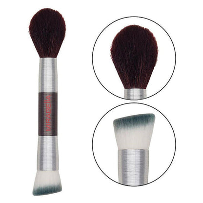 The sculpting side of the makeup brush features a tapered, curved design for simple and controlled contouring and is made of the highest-quality synthetic fibers sized perfectly for cheekbones. The serum side of the makeup brush features a synthetic angled brush that buffs and blends skin to air-brushed perfection, minimizing waste to help products last with no harsh lines.