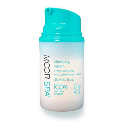 Moor Spa® Clarifying Cream offers lightweight moisturization and restores a bright, clear skin tone with sweet potato extract, cucumber, marshmallow, St. John’s wort, and asafetida. For oily / combination skin. Available in 1.7 fl. oz., 16.9 fl. oz., and 3 ml sample size.