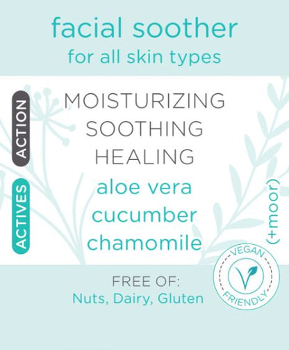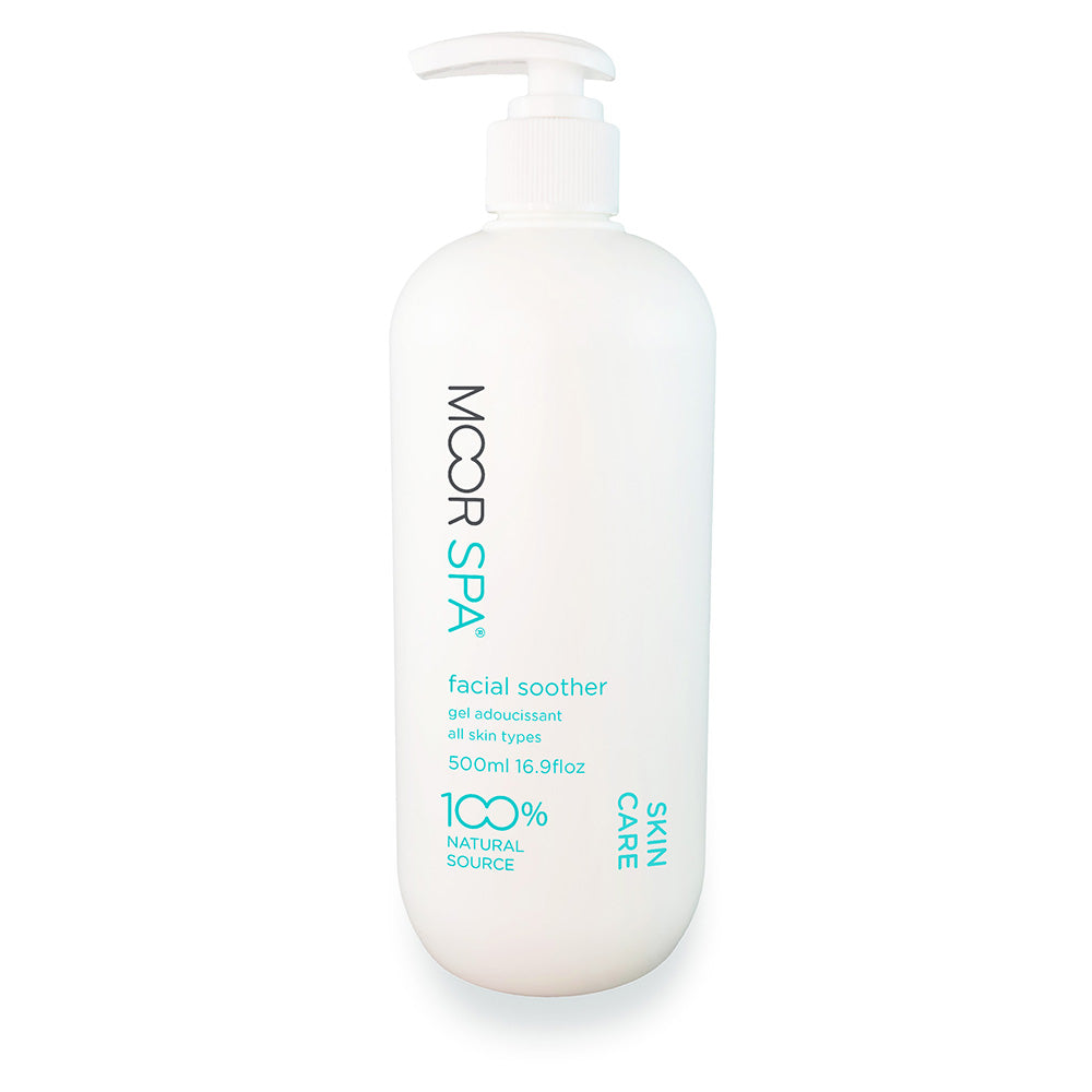 Soothe and hydrate sunburned, irritated, or damaged skin with Moor Spa® Facial Soother. This gentle formulation is also excellent for soothing skin after facial or body waxing procedures. It contains extracts of cucumber, aloe vera, and chamomile. For all skin types. Available in 4.1 fl. oz., 16.9 fl. oz., and 3 ml sample size.