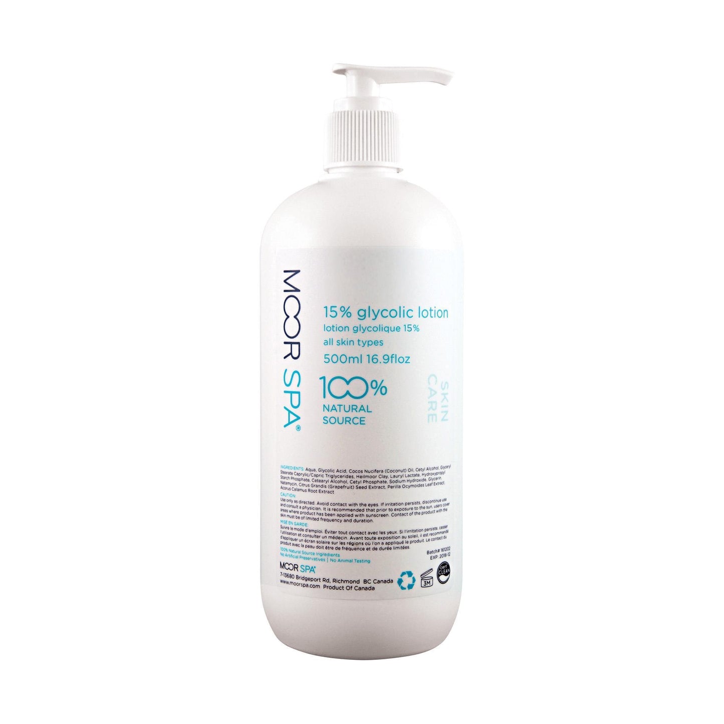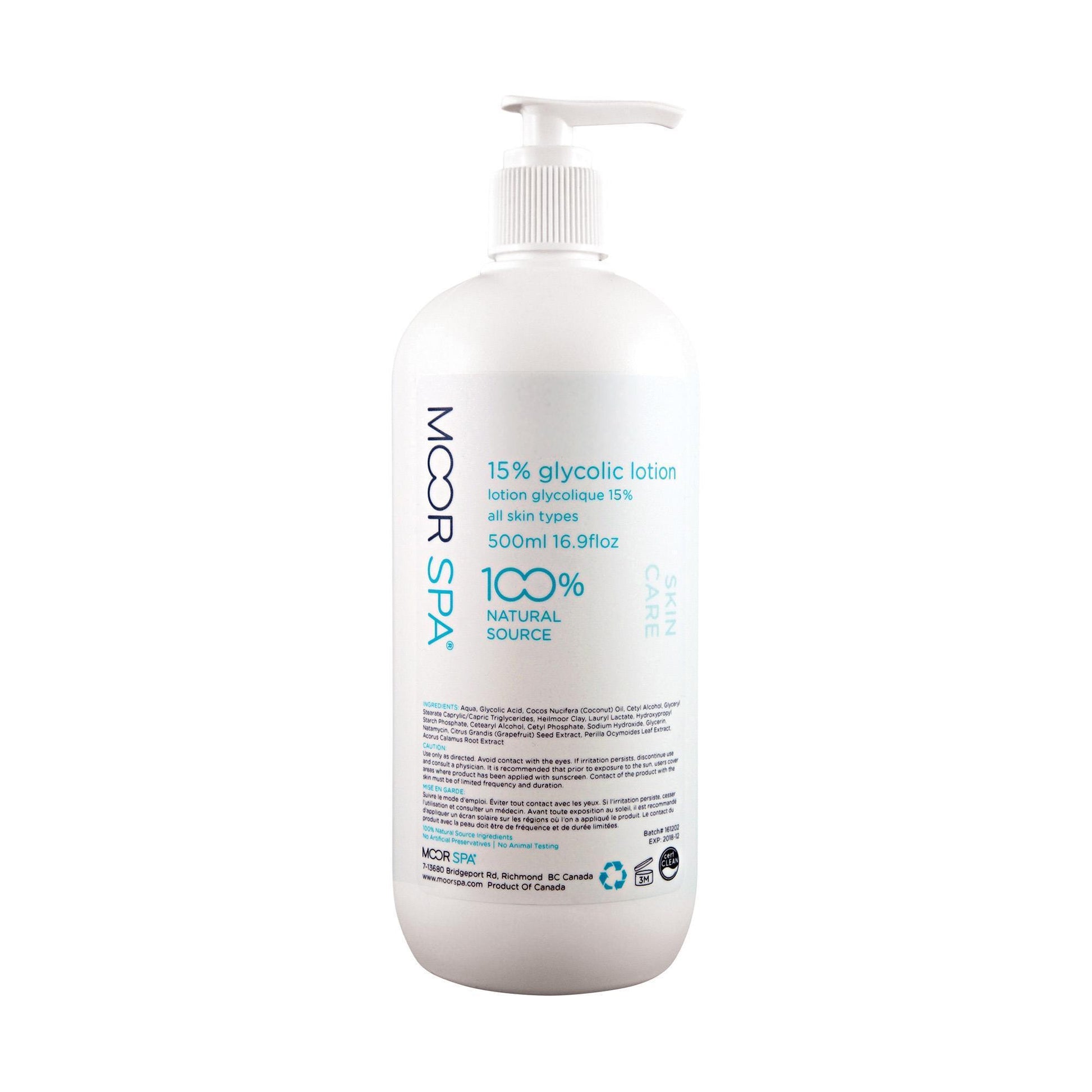 Clients will love the way Moor Spa® 10% and 15% Glycolic Lotion diminishes the appearance of fine lines, leaving a fresh, youthful glow. This chemical exfoliant lotion removes dead skin cells using the “peeling” action of glycolic acid. For all skin types (except those who are on Accutane or using concentrated Vitamin A topical creams). 15% is recommended for professional use only.