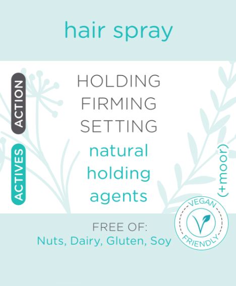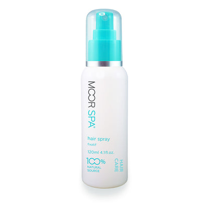 Moor Spa® Hair Spray features a fast drying, firm hold formulated with naturally derived ingredients. This spray sets hair into place without the buildup or flaking that’s common with traditional hair spray. Perfect for locker room and at-home use. 4.1 fl. oz.