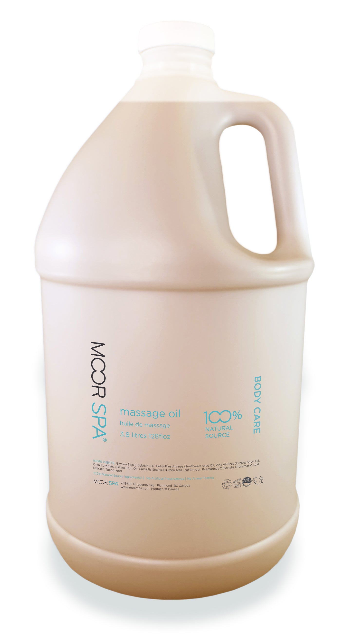 Moor Spa Massage Oil is an exquisite blend of soybean, grapeseed, sunflower, and olive oils infused with antioxidant green tea and rosemary extracts plus vitamin E.