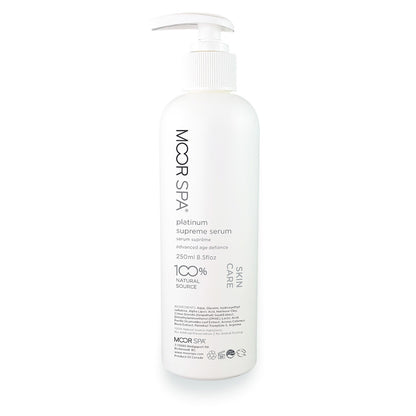 Moor Spa® Platinum Supreme Serum incorporates the renowned age-defying effects of 2 advanced peptides and alpha lipoic acid—all in 1 concentrated serum. Lactic acid also provides mild exfoliation to reveal glowing skin. For all skin types. Available in 1 fl. oz., 8.5 fl. oz., and 3 ml sample size.