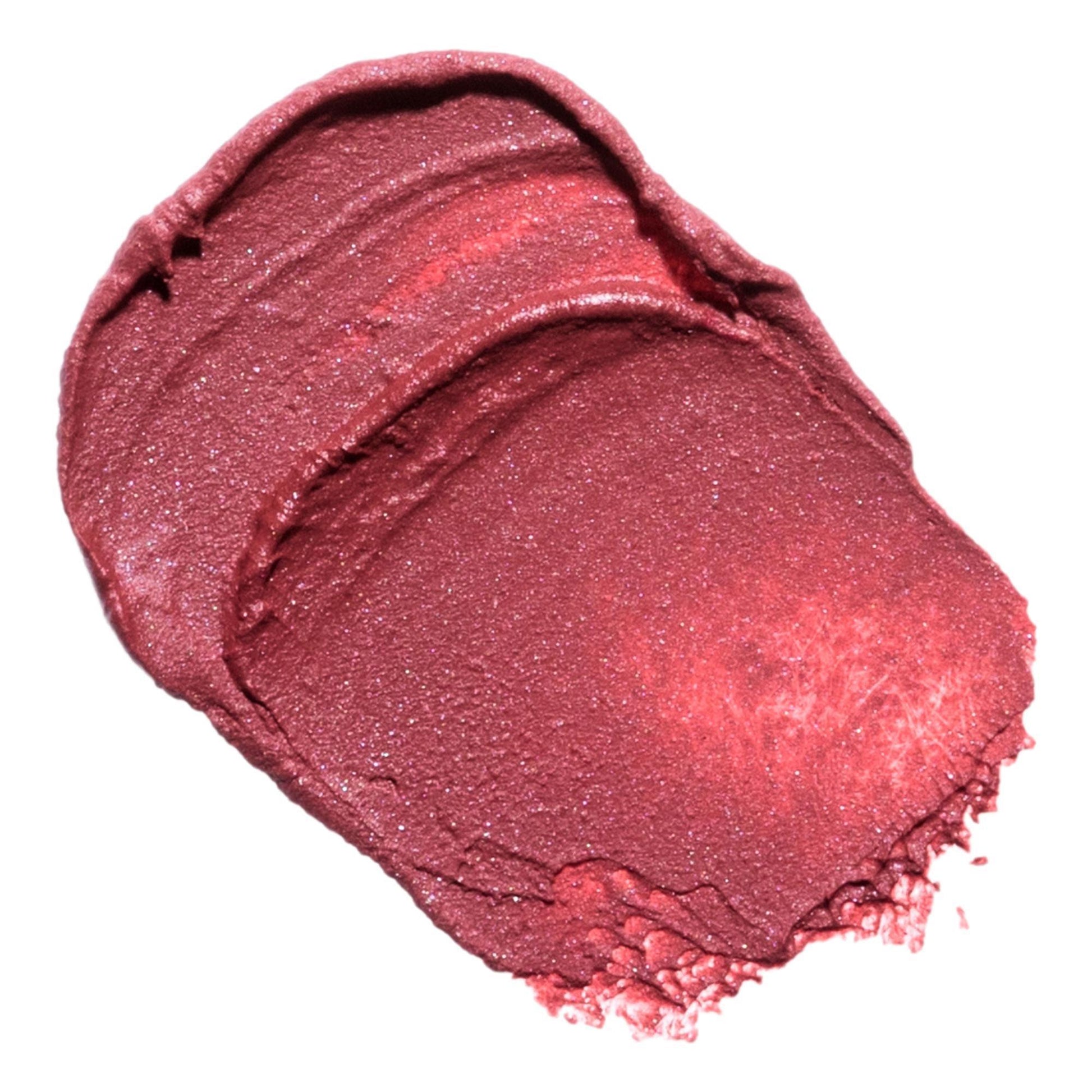 - A deep reddish-pink color lipstick with a muted blue undertone.