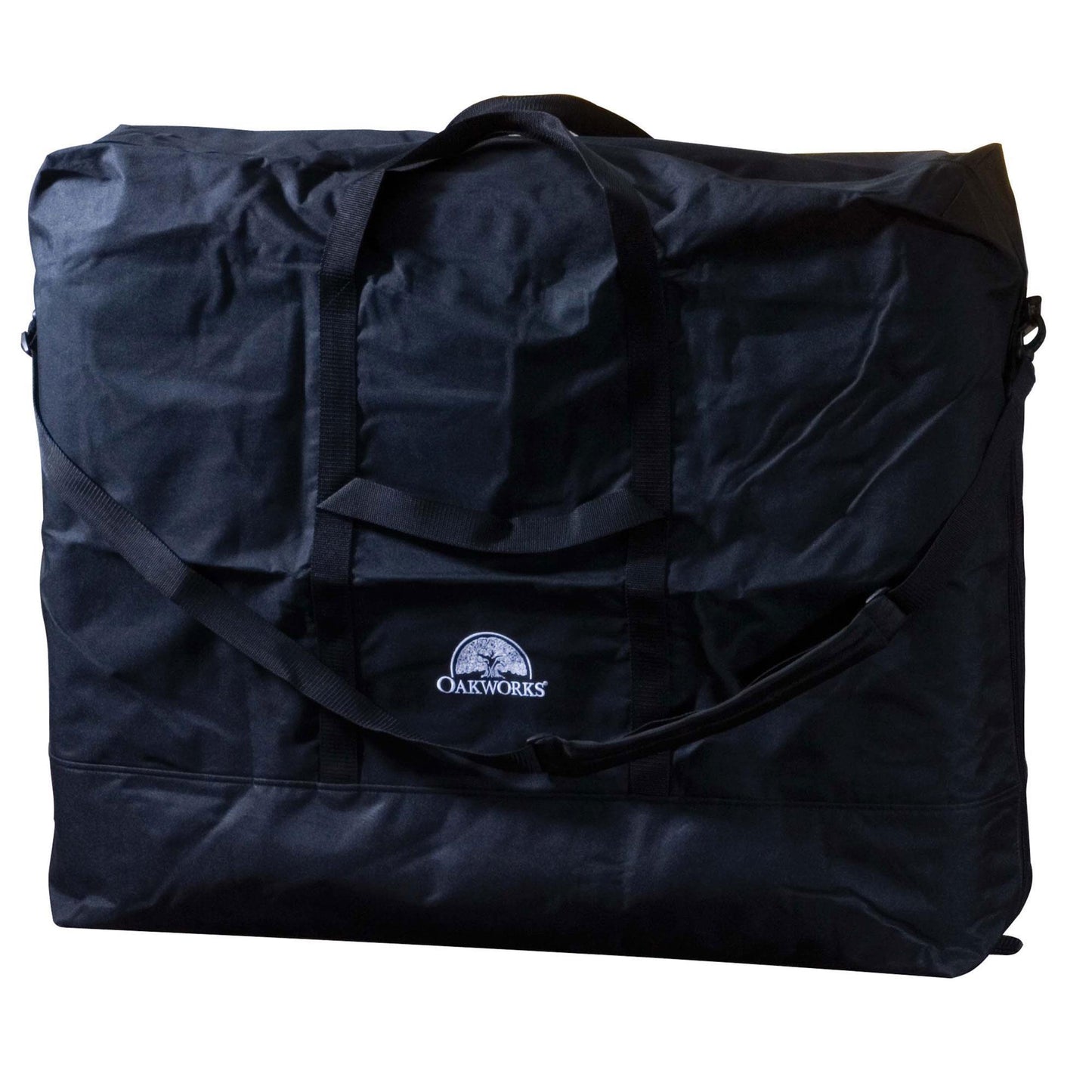 The Oakworks Essential Carry Case has a large pocket, shoulder strap, handles, dual-slide zippers, and is most budget friendly. The durable black Polyester will help protect your portable massage table during transport and is designed to fit portable massage tables up to 31" wide. This product is available in Black only.