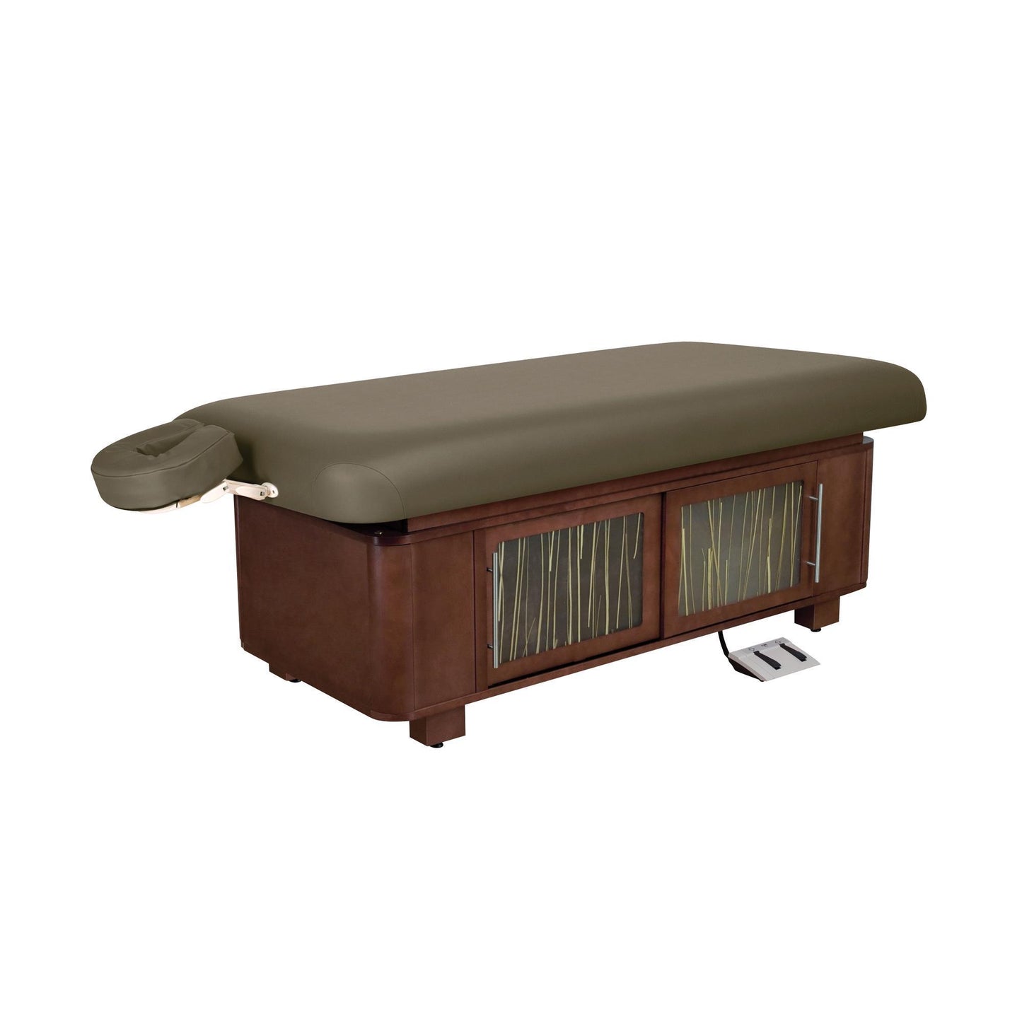 The ultimate in luxury, the Celesta®'s exquisite contemporary design, superior comfort and fully electric functionality will transform the spa experience from the mundane to the extraordinary. The combination of great guest experience and superior functionality are the reason it is found in 5 Star Hotel Spas around the world. And since the cabinet with its many options for door customization, is hot towel cabi ready, you'll have everything you need at arm's length while complementing your spa's décor. The Flat Top option is all that you need for some massage modalities and is the most affordable top option available from Oakworks. Our selection of signature padding and upholstery choices all but guarantee that your clients will enjoy every second of their treatment experience and our superior construction ensures lasting quality at an unbeatable price.